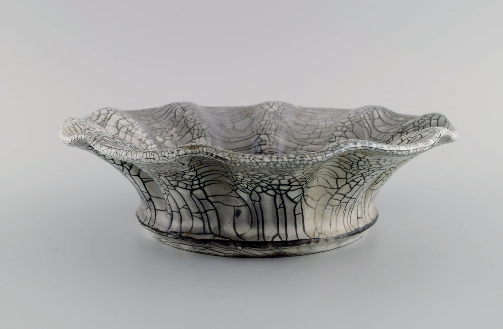 Svend Hammershøi for Kähler. Wavy edged bowl in glazed stoneware. Beautiful gray-black double glaze. 1930s / 40s.