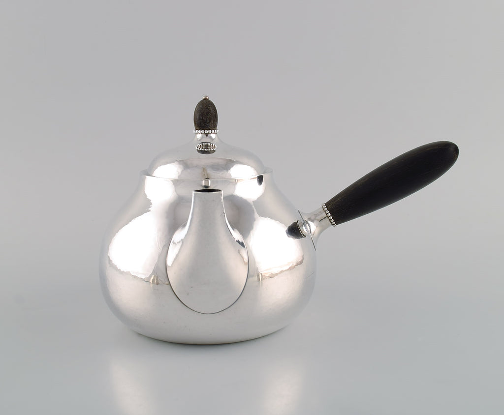 Georg Jensen art nouveau teapot in sterling silver with shaft and knob in ebony. Model number 80C. Designed in 1915.