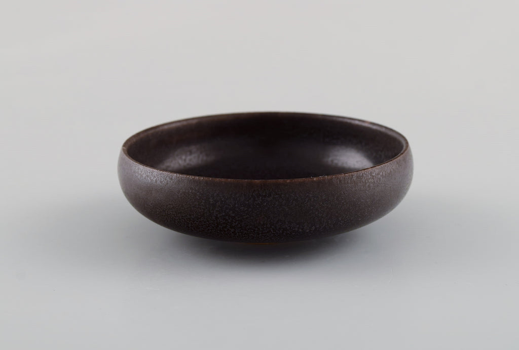 Saxbo miniature bowl in glazed ceramics. Beautiful glaze in brown shades. Mid-20th century.