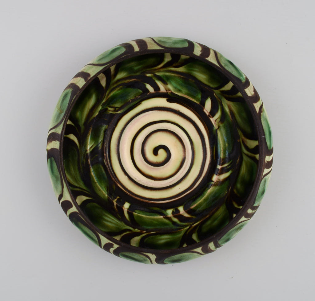 Kähler, HAK. Round bowl in glazed stoneware. Green leaves on a cream-colored background. 1940s.
