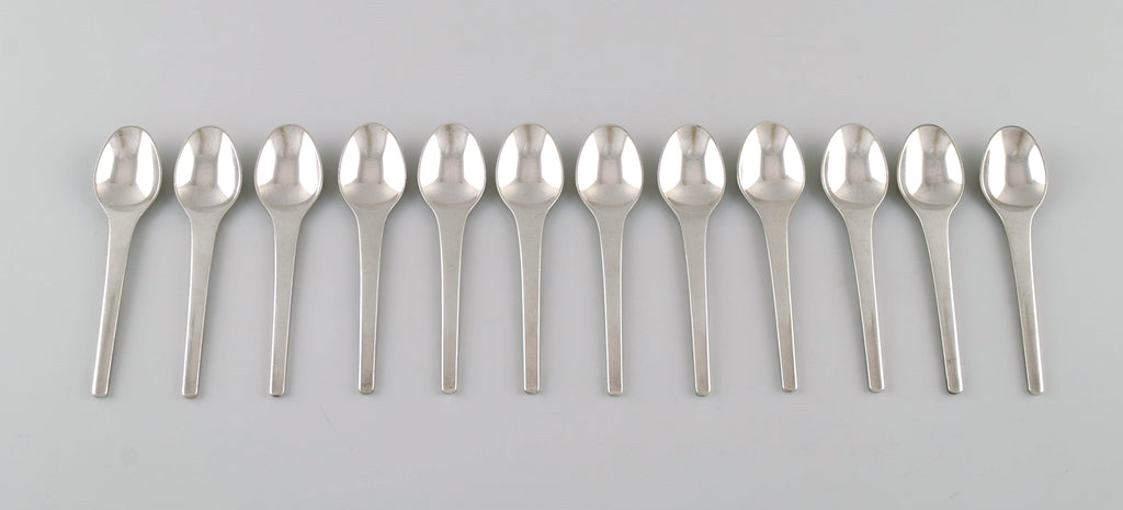Twelve Georg Jensen Caravel coffee spoons in sterling silver.