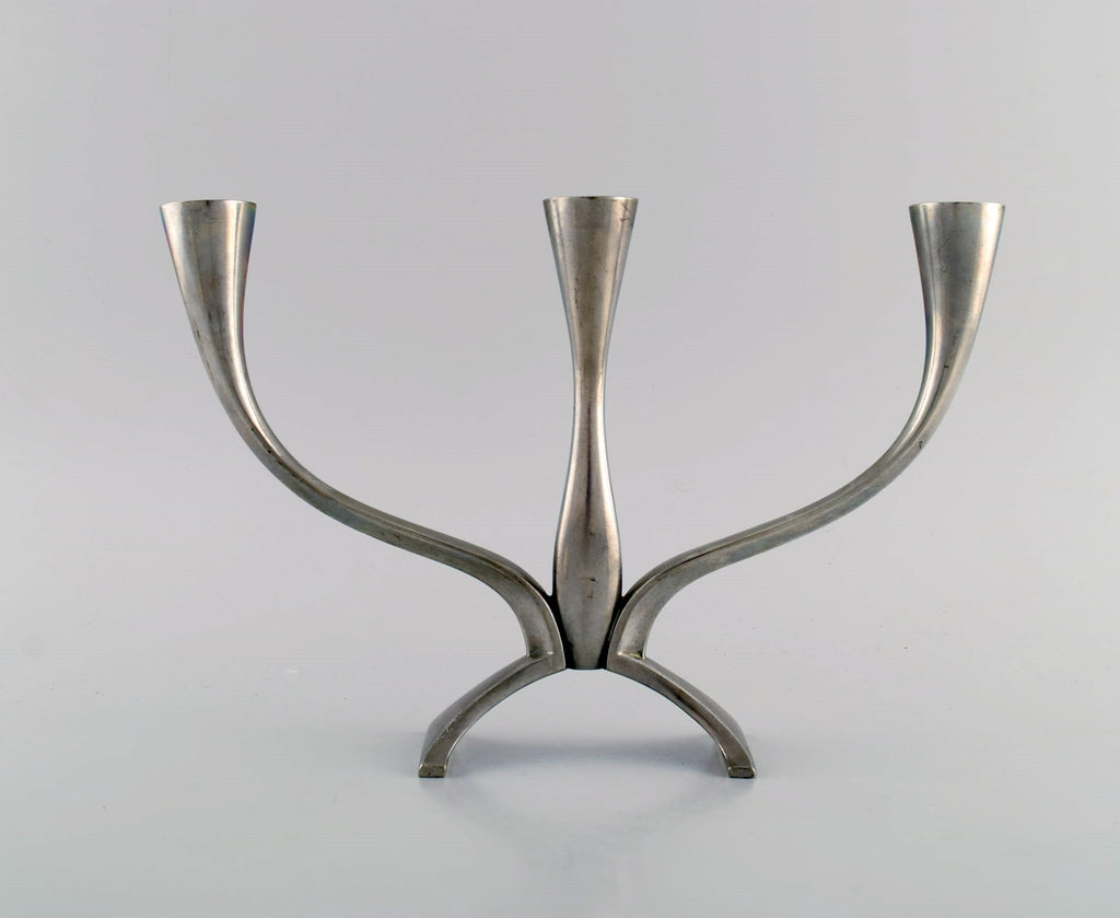 Just Andersen. Rare three armed candlestick in pewter. 1940s / 50s. Model number 2696.