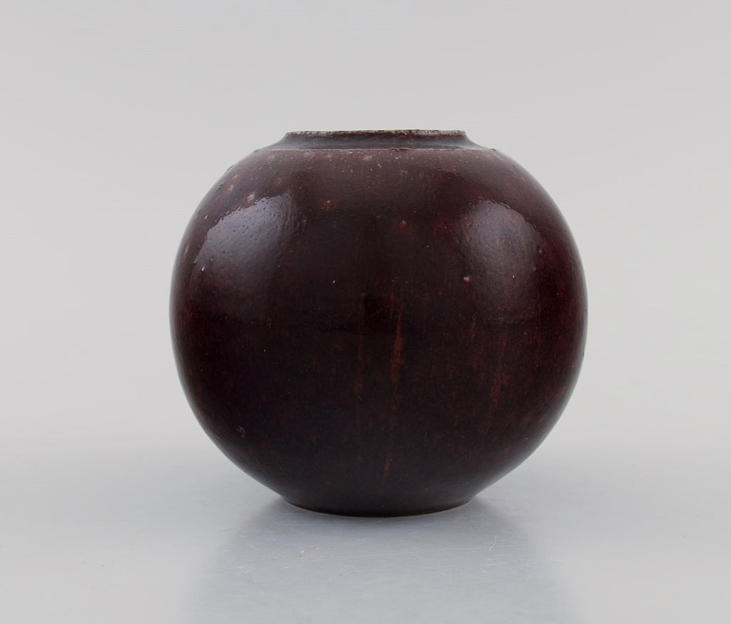 Round Royal Copenhagen vase in glazed ceramics. Beautiful ox blood glaze. Mid-20th century.