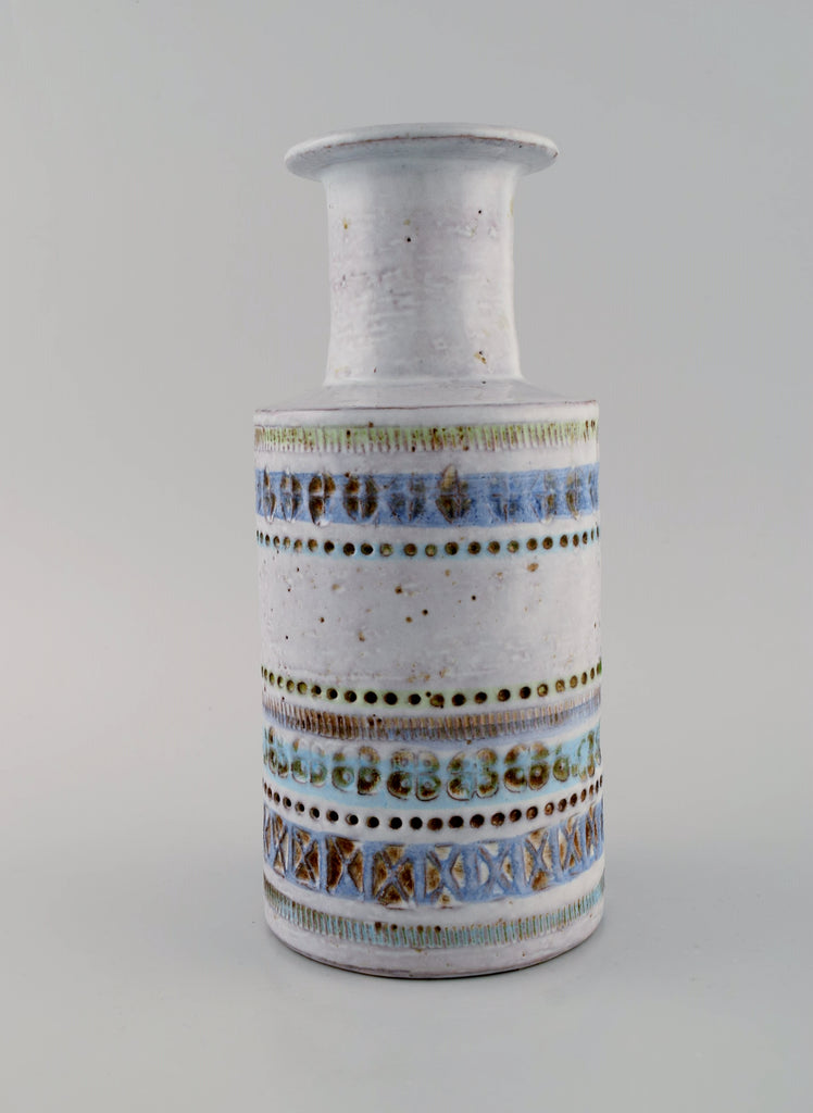 Carl Harry Stålhane (1920-1990) for Rörstrand. Vase in glazed ceramics with incised vertical pattern. 1960s.