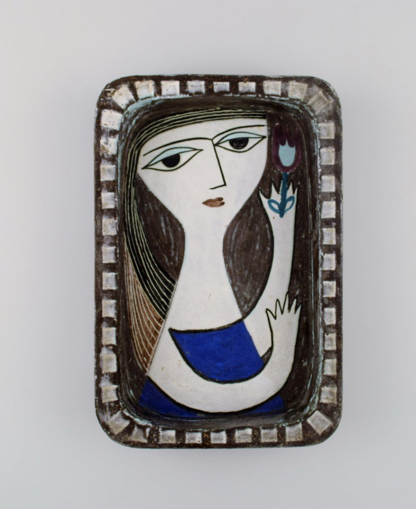 Albert Dahan for Vallauris. Unique art deco lidded chest in glazed stoneware. Beautiful glaze in shades of blue. Ca. 1970.