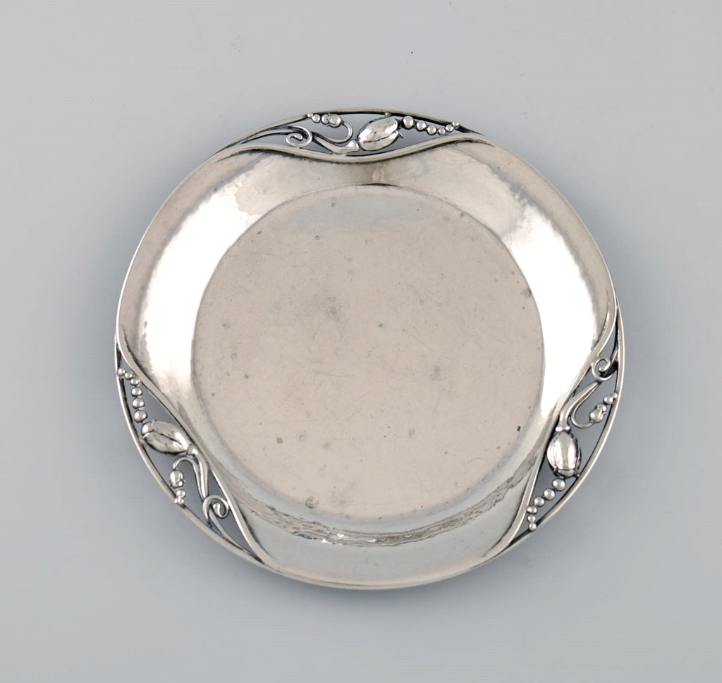 Georg Jensen Blossom bottle tray in hammered sterling silver. Model 2A. Dated 1915-1930.