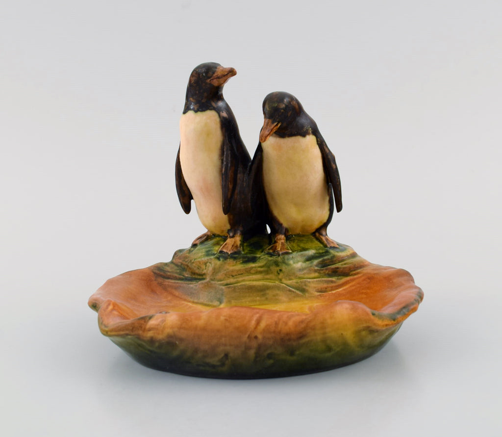 Ipsen's, Denmark. Bowl in hand-painted glazed ceramics modeled with penguins. 1920s / 30s. Model Number 223.