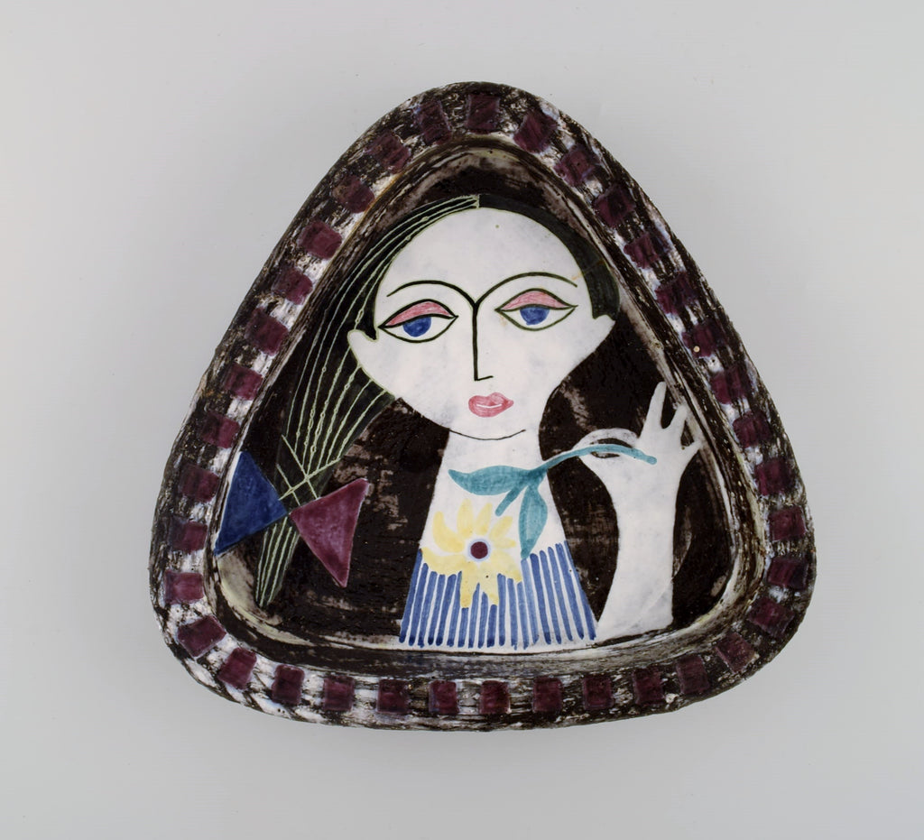 Ipsen's, Denmark. Bowl in hand-painted glazed ceramics modeled with jumping hare. 1920s / 30s. Model number 206.