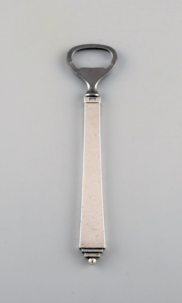 Georg Jensen Pyramid bottle opener in sterling silver and stainless steel. Dated 1933-44.