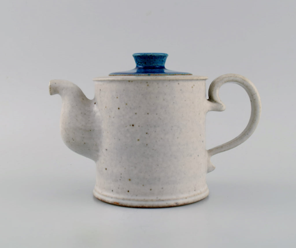 Nils Kähler (1906-1979) for Kähler. Ceramic teapot with blue glazed lid knob. 1960s.