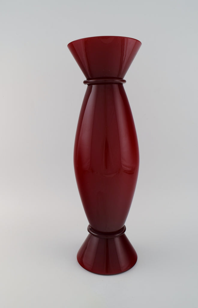 Very large Murano / Venini vase in burgundy red mouth blown art glass. Italian design, 1980s.