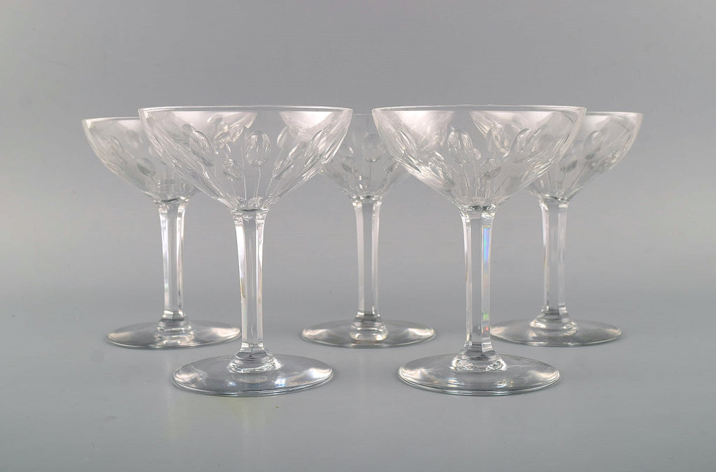 Baccarat, France. Five champagne bowls in clear mouth-blown crystal glass. Mid-20th century.