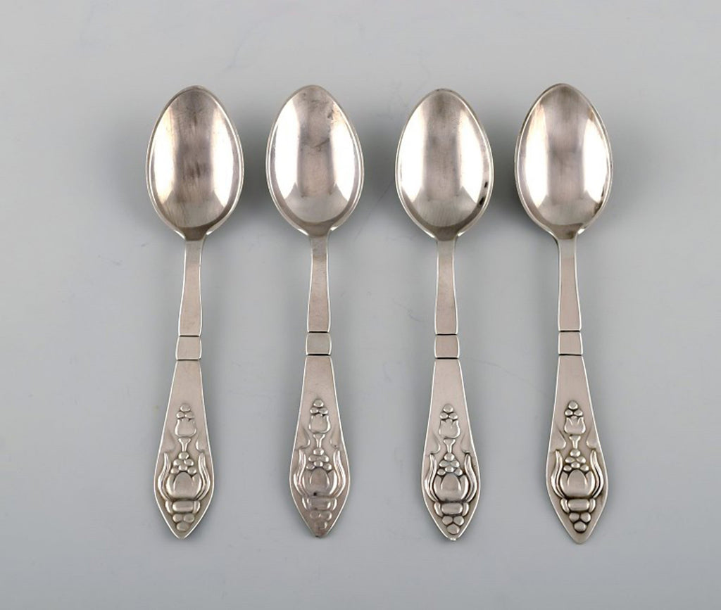 Four rare Georg Jensen Bell coffee spoons in sterling silver.