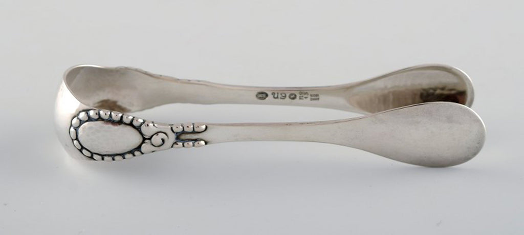 Evald Nielsen number 13 sugar tong in hammered silver (830). Dated 1925.