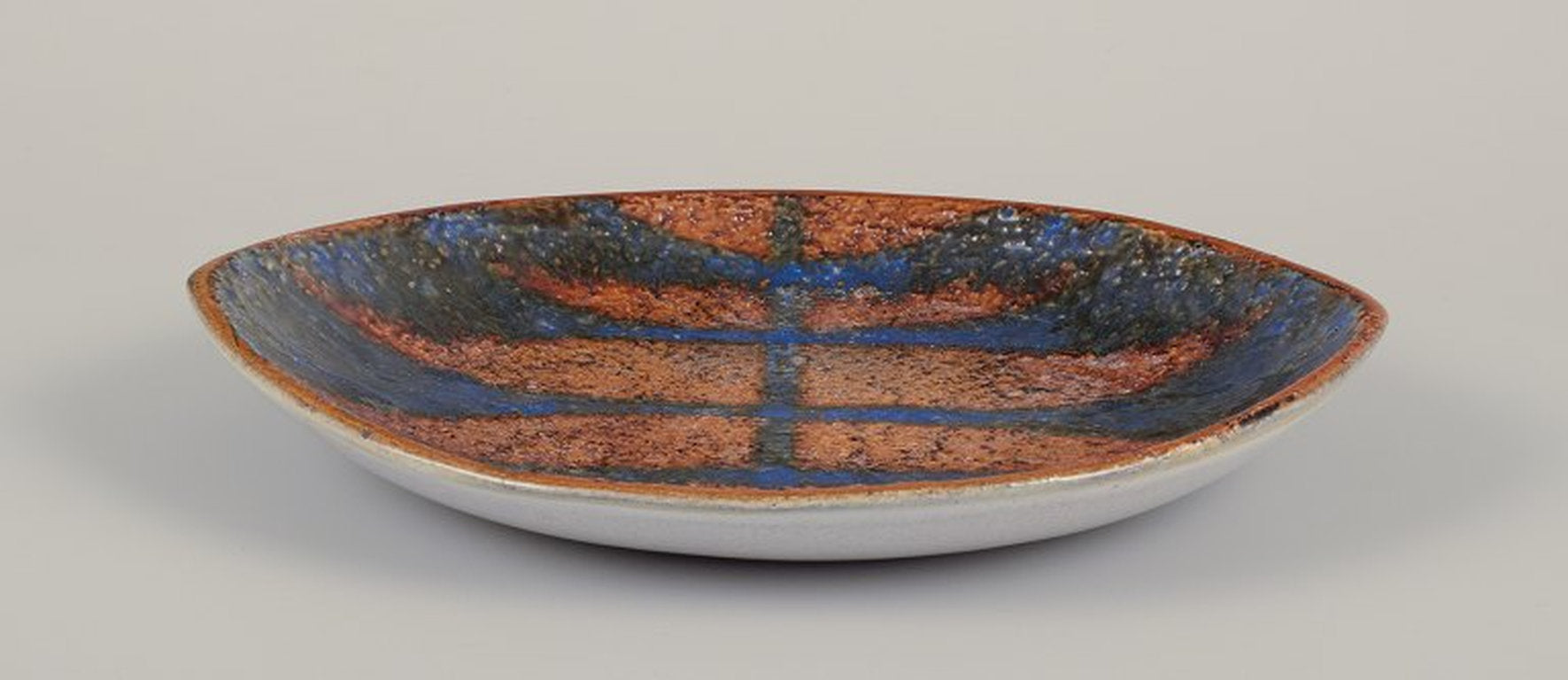 Mari Simmulson (1911-2000) for Upsala Ekeby, Sweden. Low ceramic bowl with glaze in blue and ochre tones.