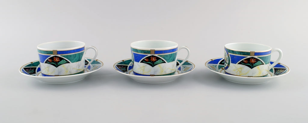 Limoges, France. Three Christian Dior "Dioricis" anniversary coffee cups with saucers. 1960s / 70s.