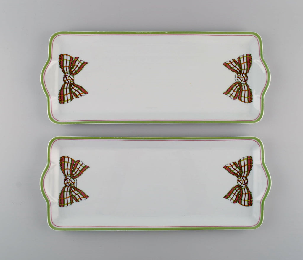Limoges, France. Two rare Christian Dior "Spring" serving trays in porcelain decorated with ribbon and bow. 1980s.