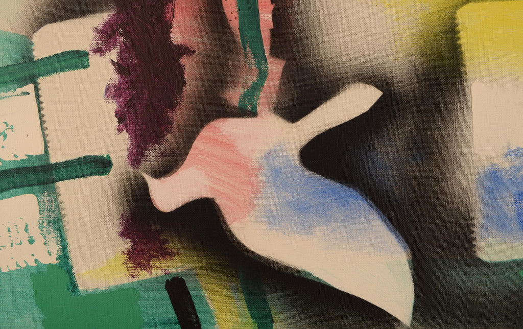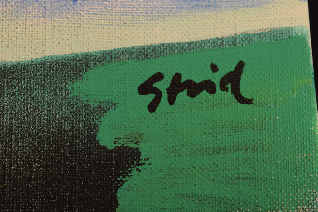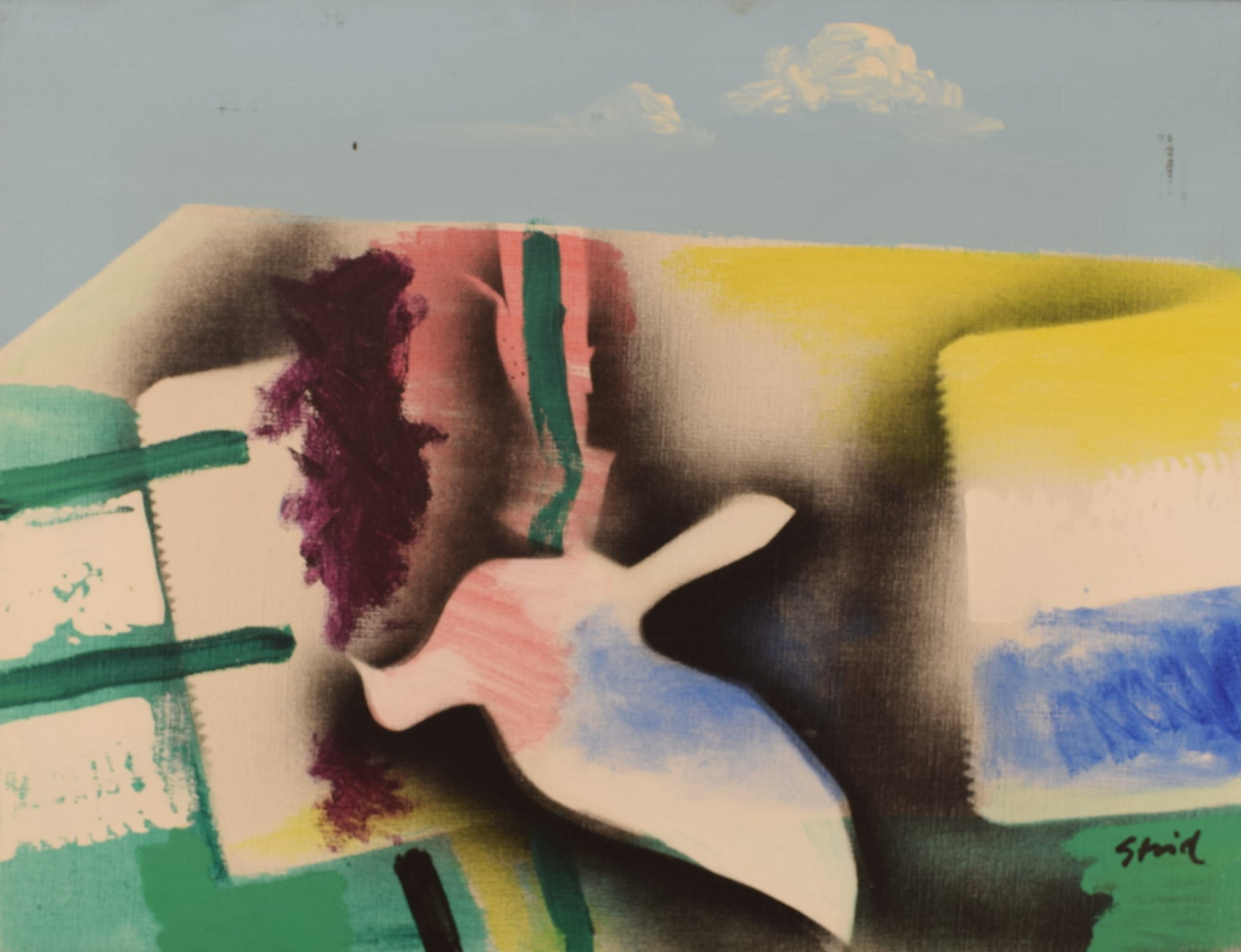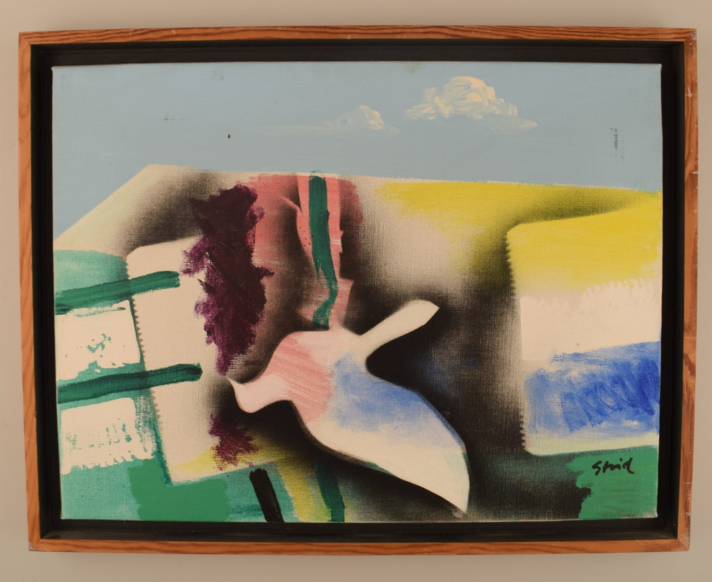 Hardy Strid (1921-2012), Swedish artist. Acrylic on canvas. Modernist abstract composition. Dated 1977.