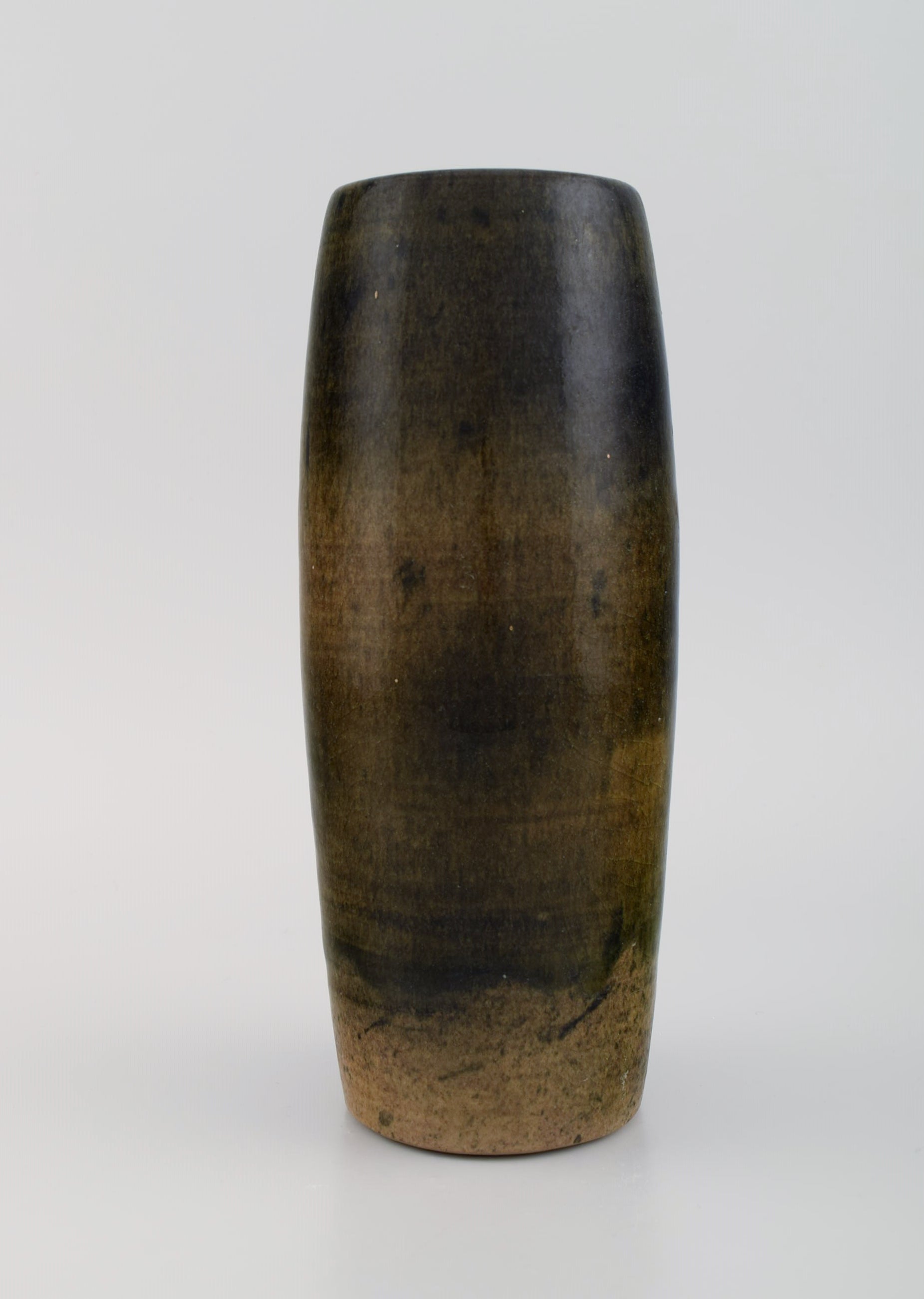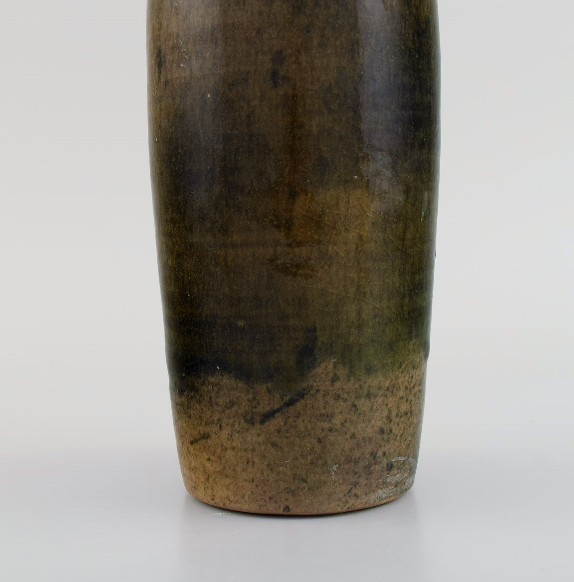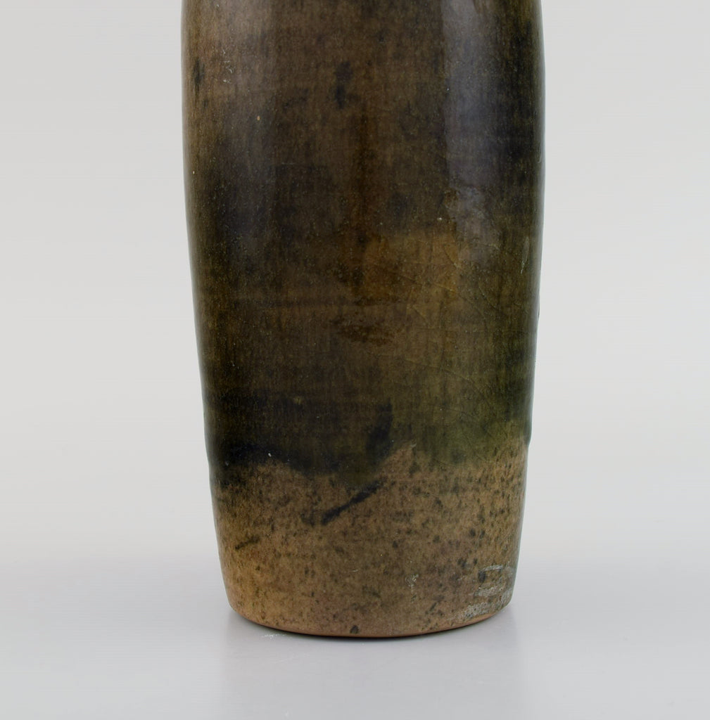 Ole Bjørn Krüger (1922-2007), Danish sculptor and ceramicist. Unique vase in glazed stoneware. Beautiful glaze in green-brown shades. 1960s / 70s.