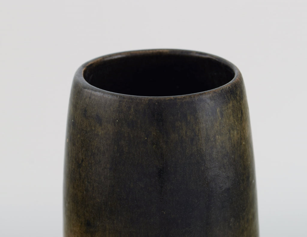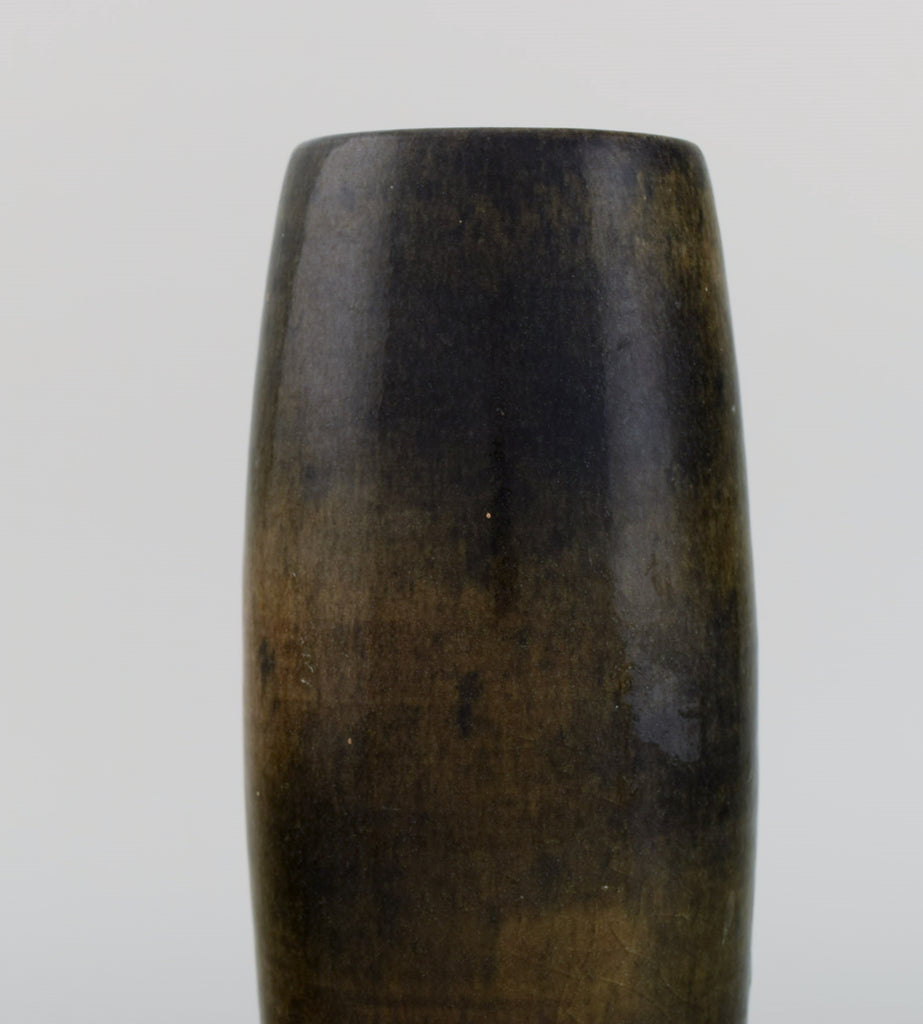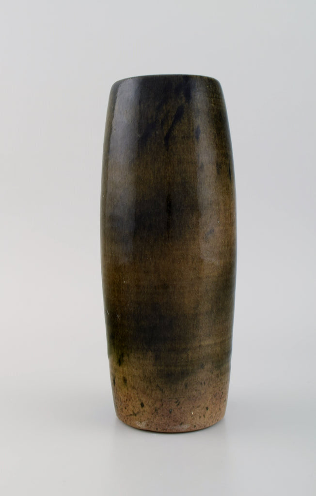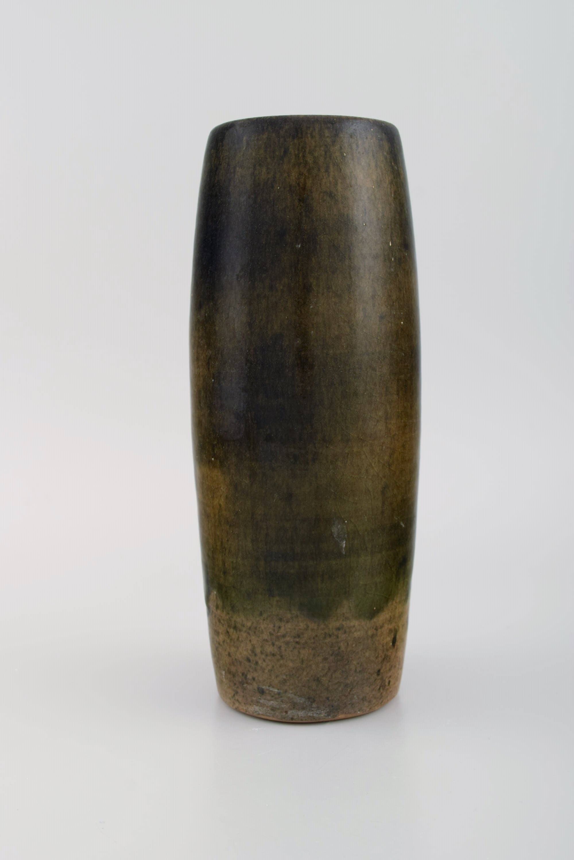 Ole Bjørn Krüger (1922-2007), Danish sculptor and ceramicist. Unique vase in glazed stoneware. Beautiful glaze in green-brown shades. 1960s / 70s.
