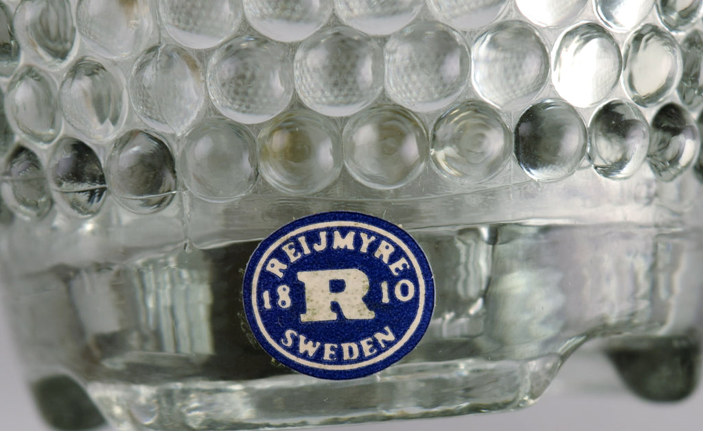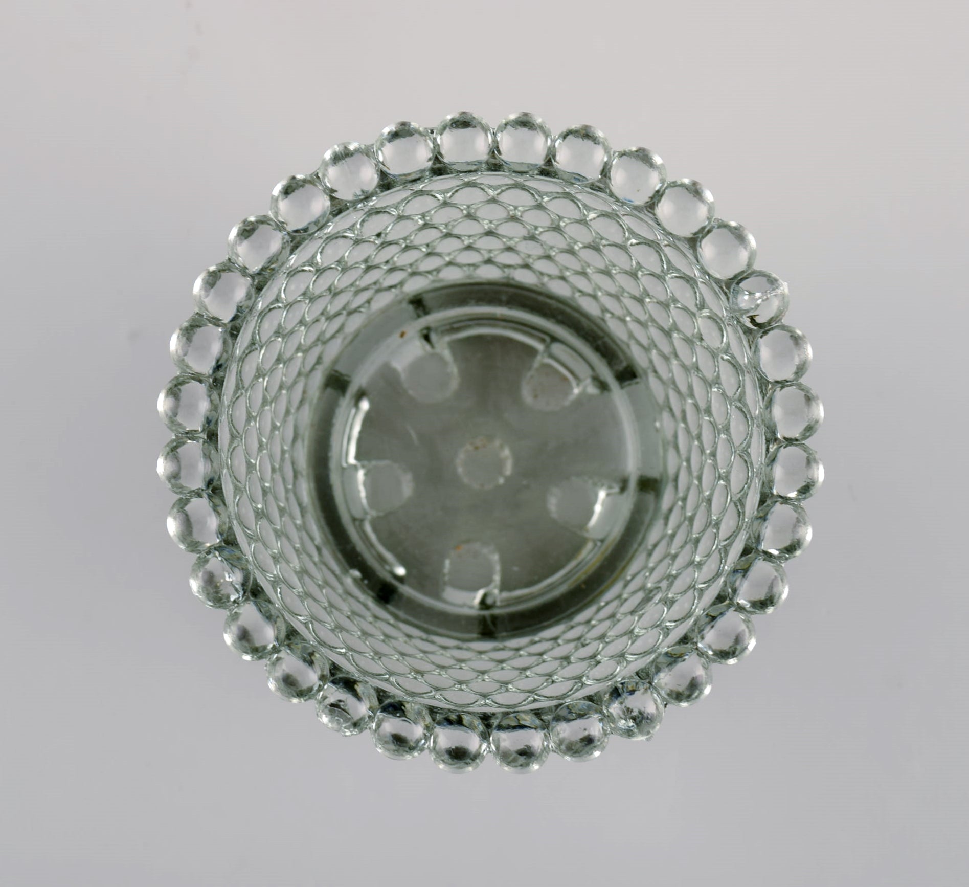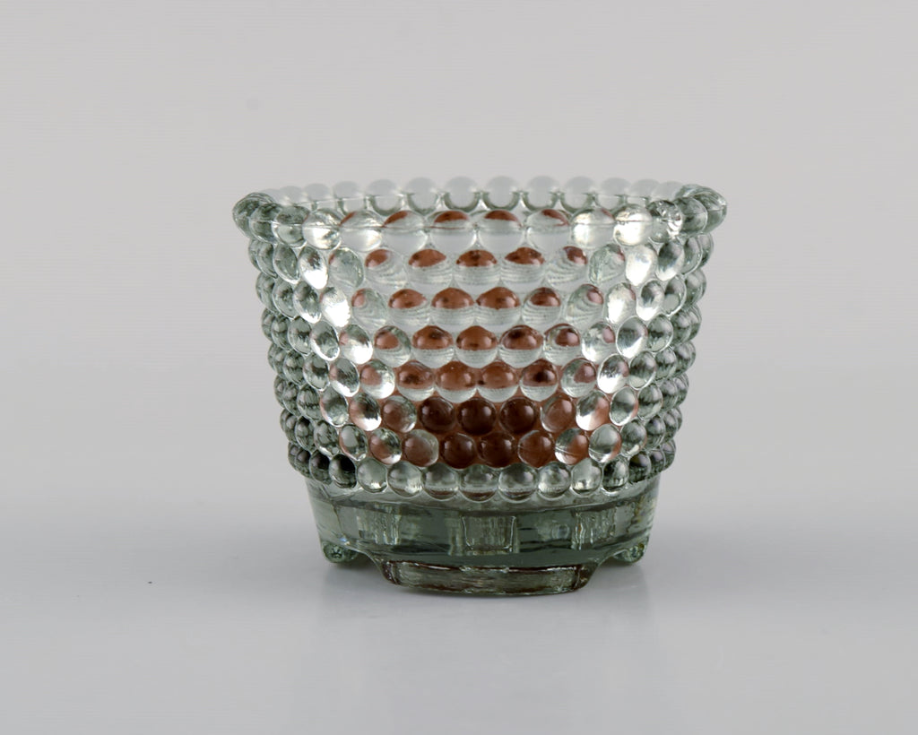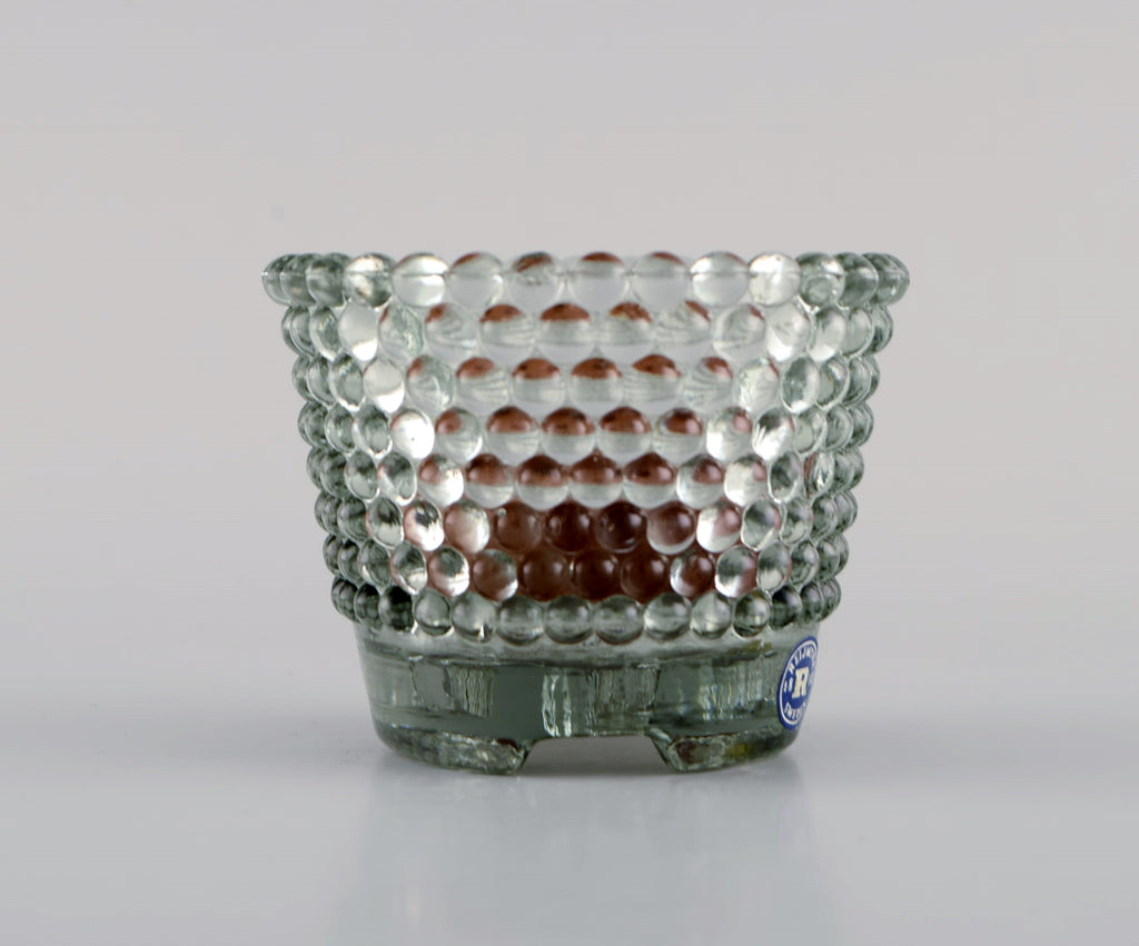 Monica Bratt for Reijmyre. Three Pärlan candlesticks for small candles in mouth blown art glass. 1950s.