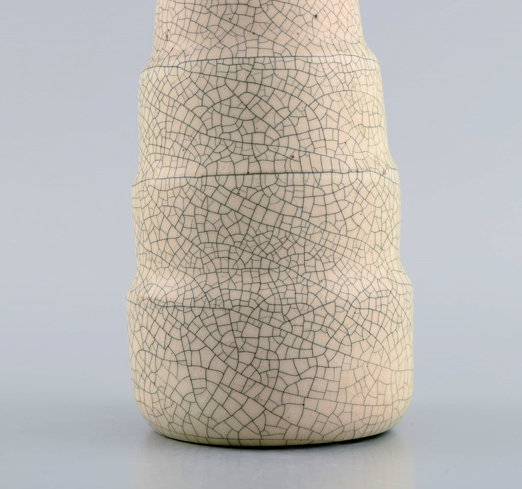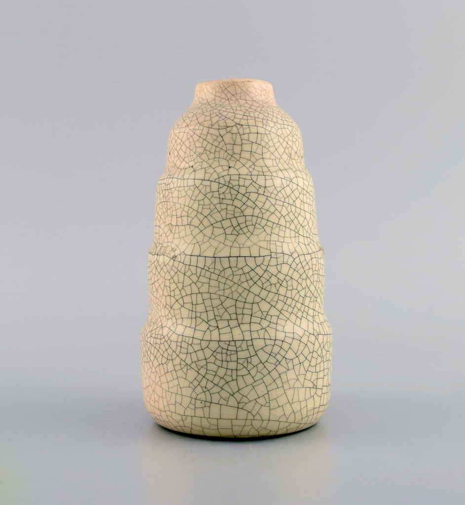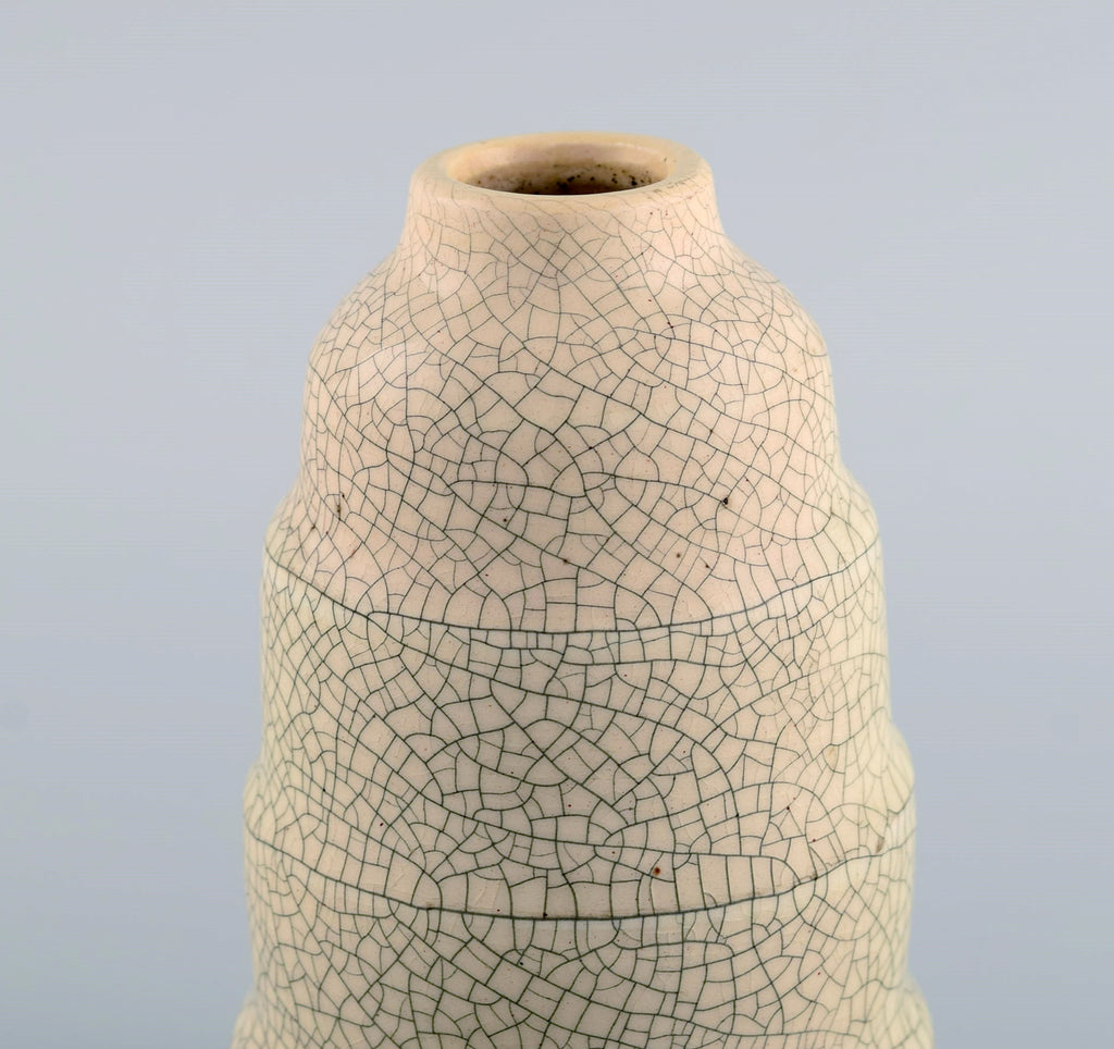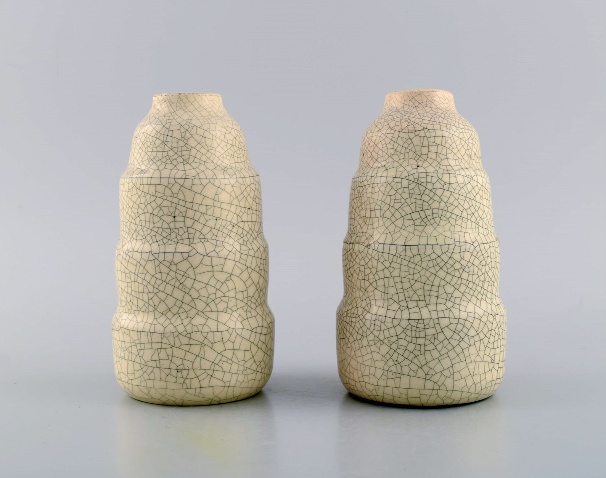 Jean Maubrou (1900-1965), France. A pair of art deco vases in glazed ceramics. Beautiful crackle glaze in cream shades. 1930s / 40s.