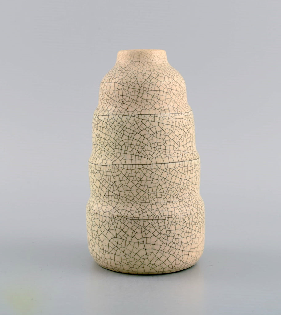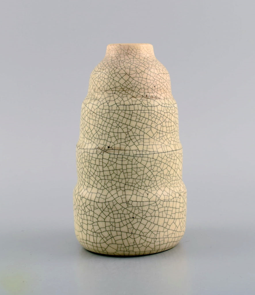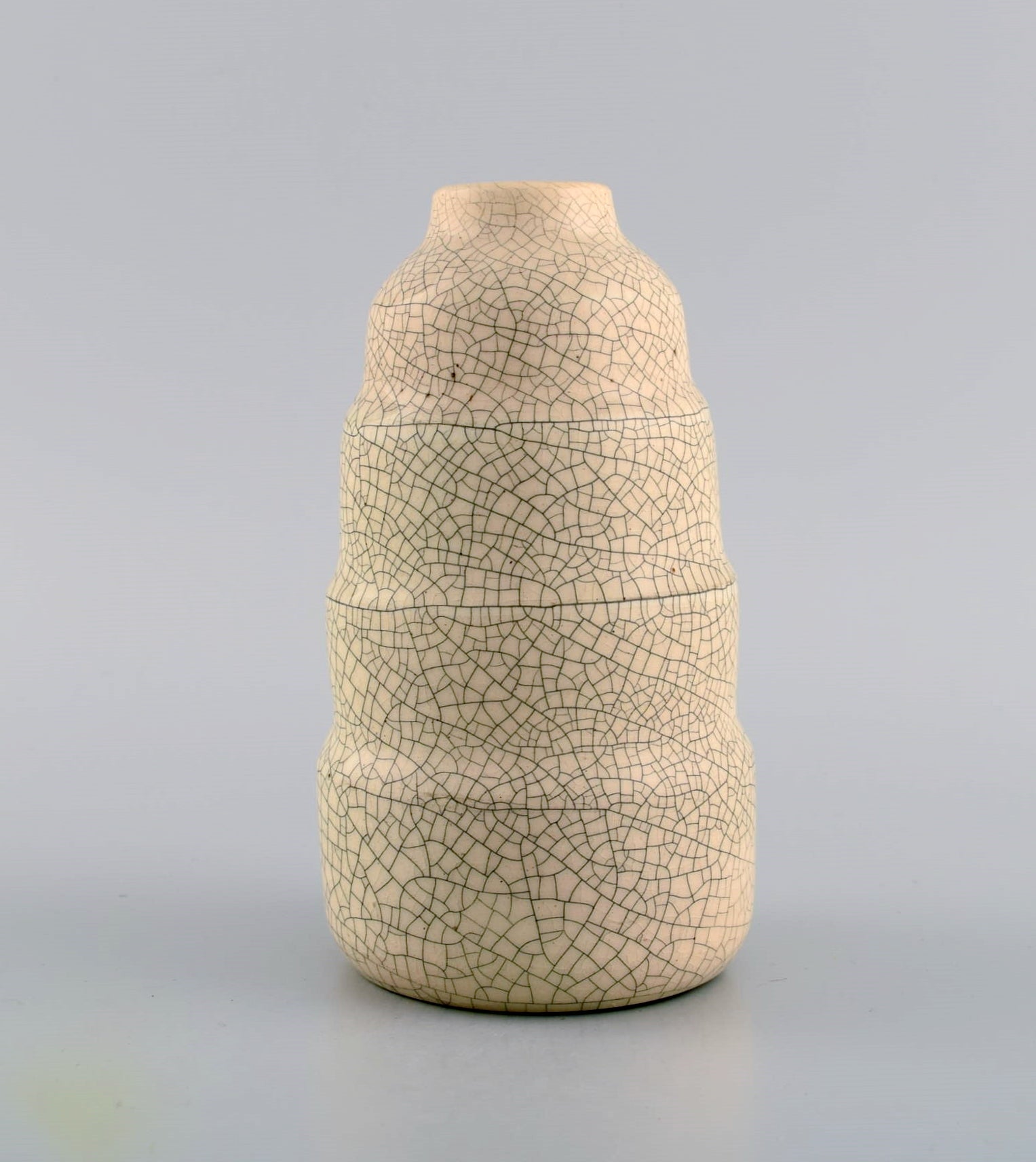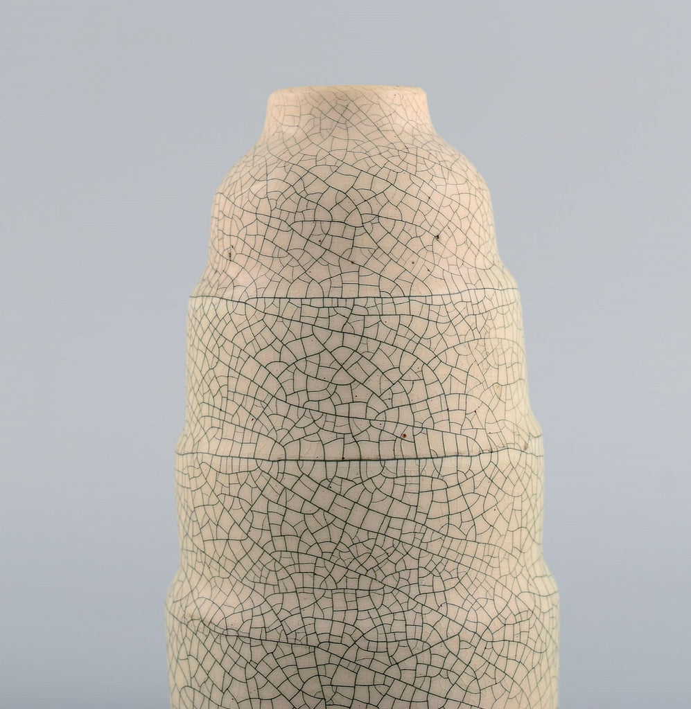 Jean Maubrou (1900-1965), France. A pair of art deco vases in glazed ceramics. Beautiful crackle glaze in cream shades. 1930s / 40s.