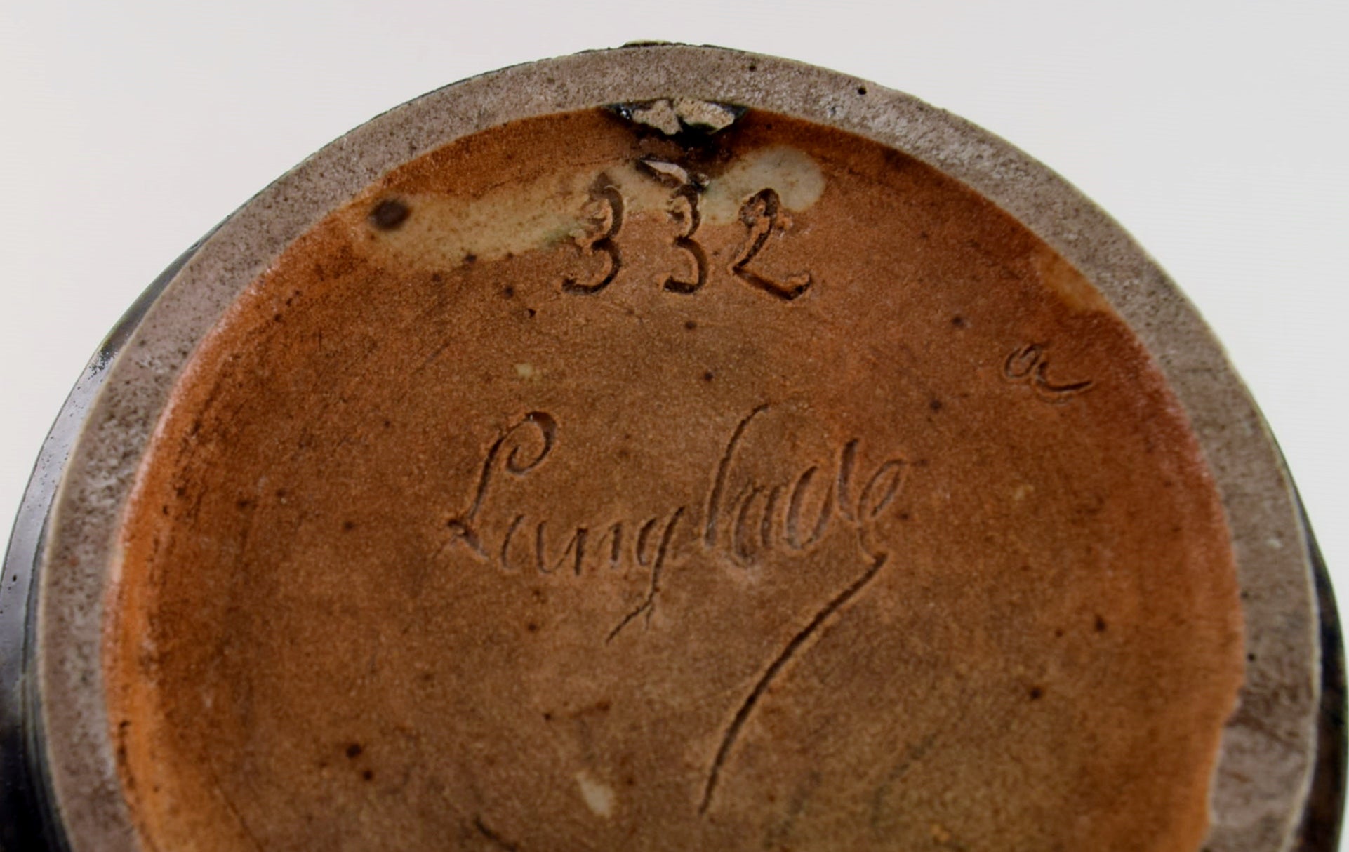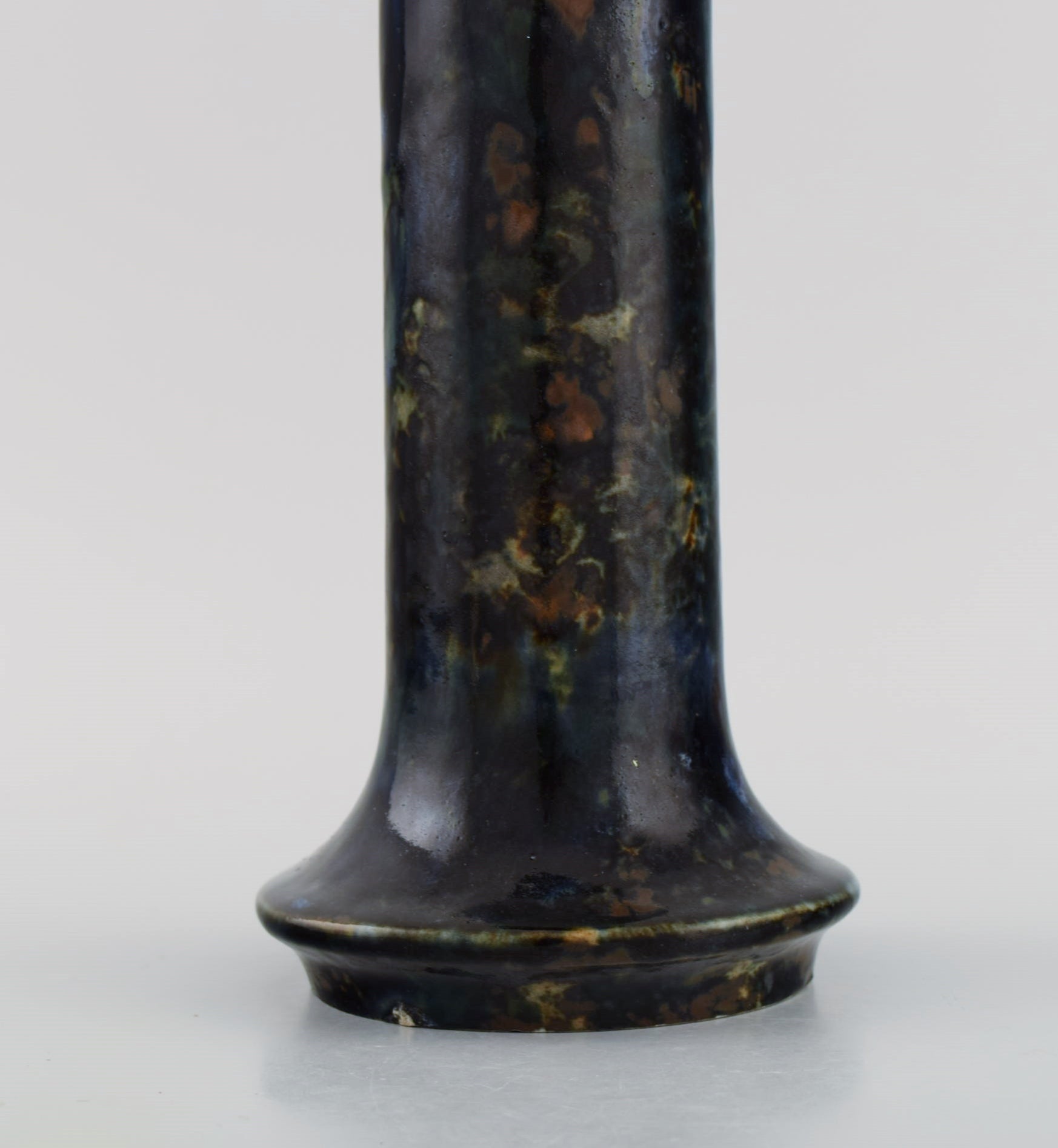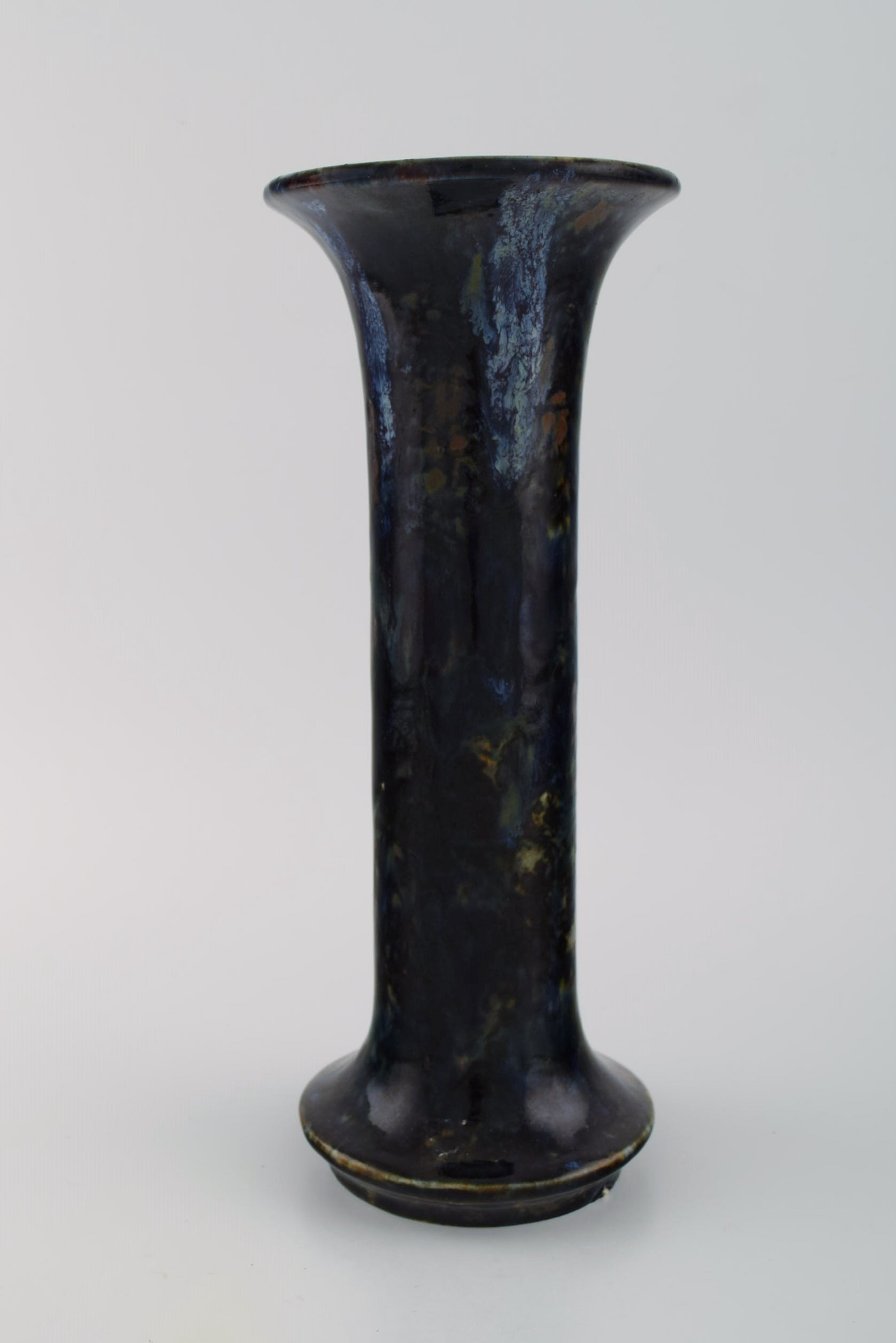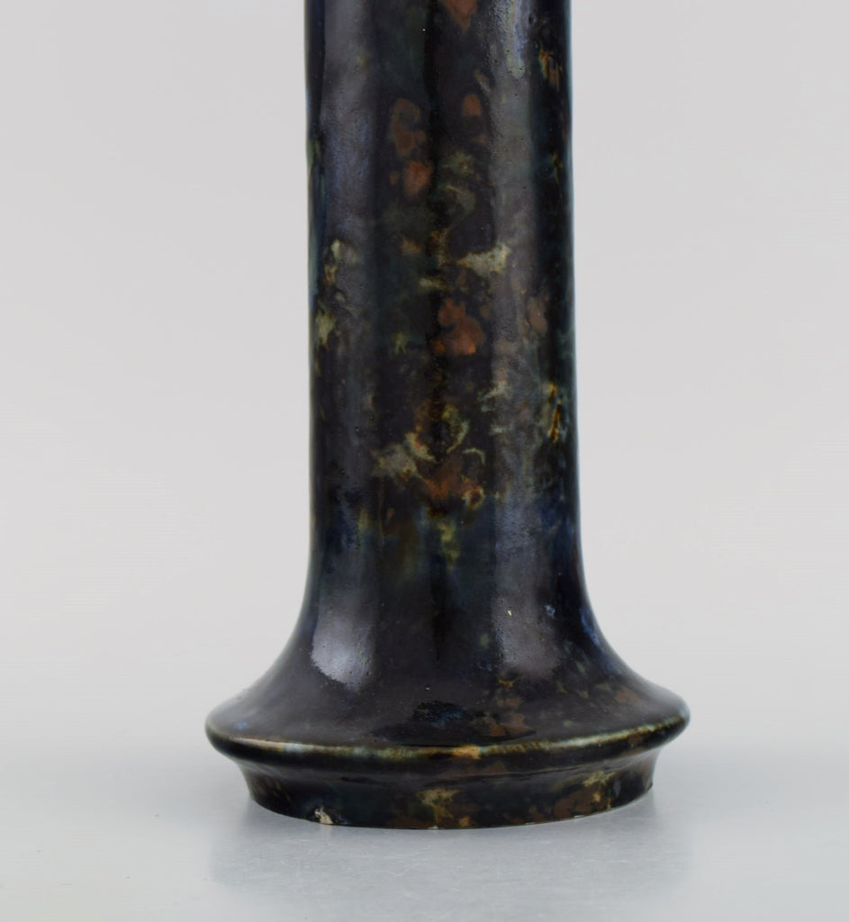 Jean Langlade (1879-1928), French potter. Vase in glazed ceramics. Beautiful glaze in black, ice blue and earth shades. 1920s.