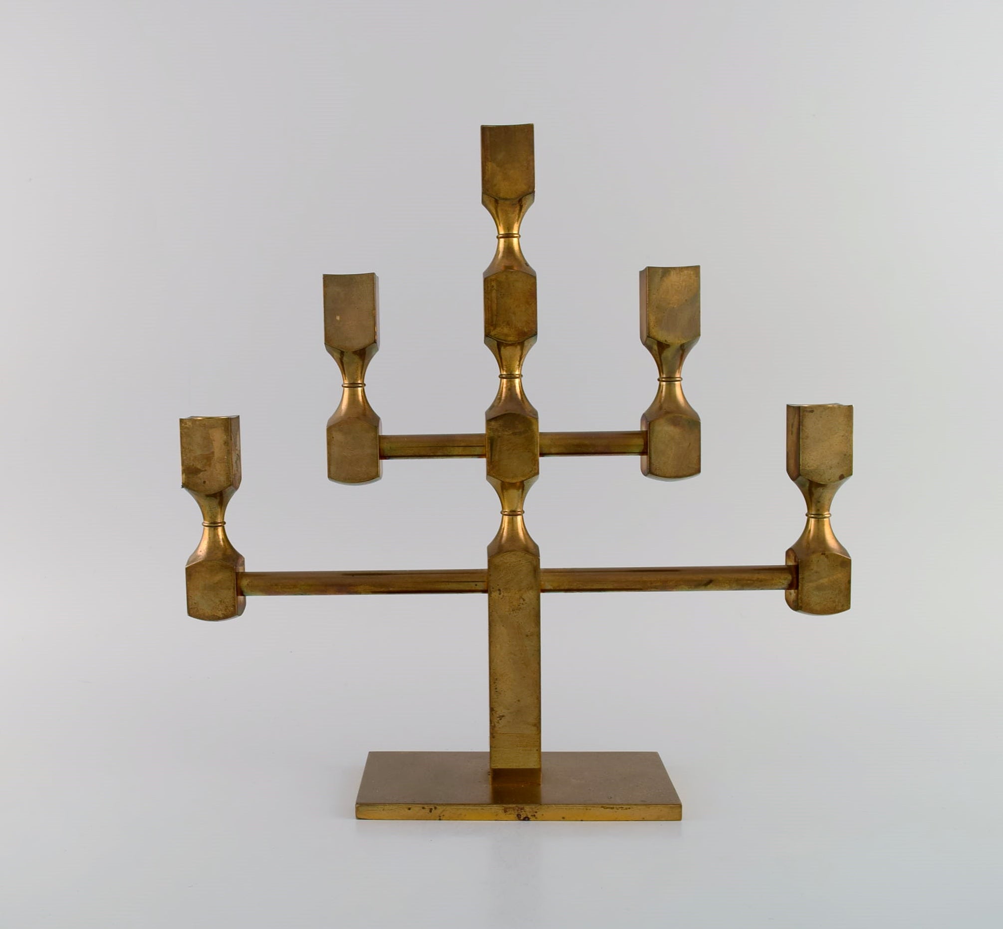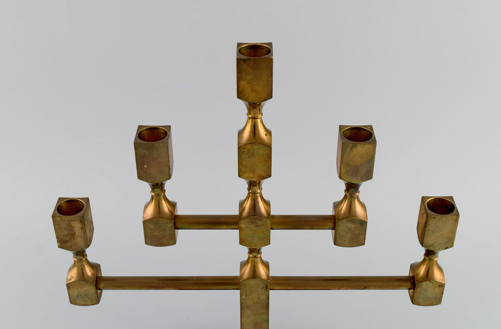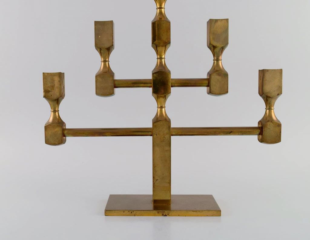 Gusum Metal. Large five-armed candlestick in brass. Swedish design, 1980s.