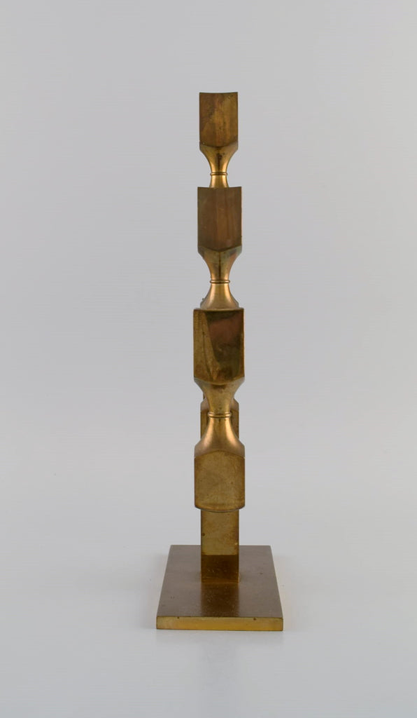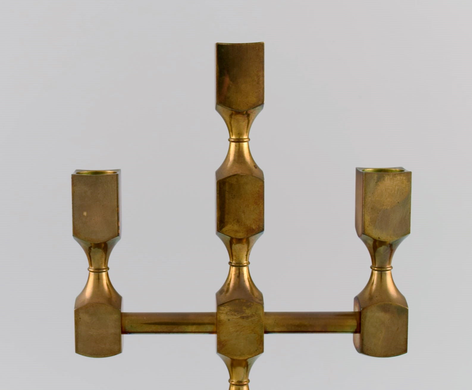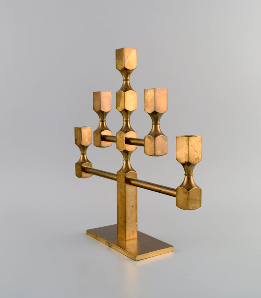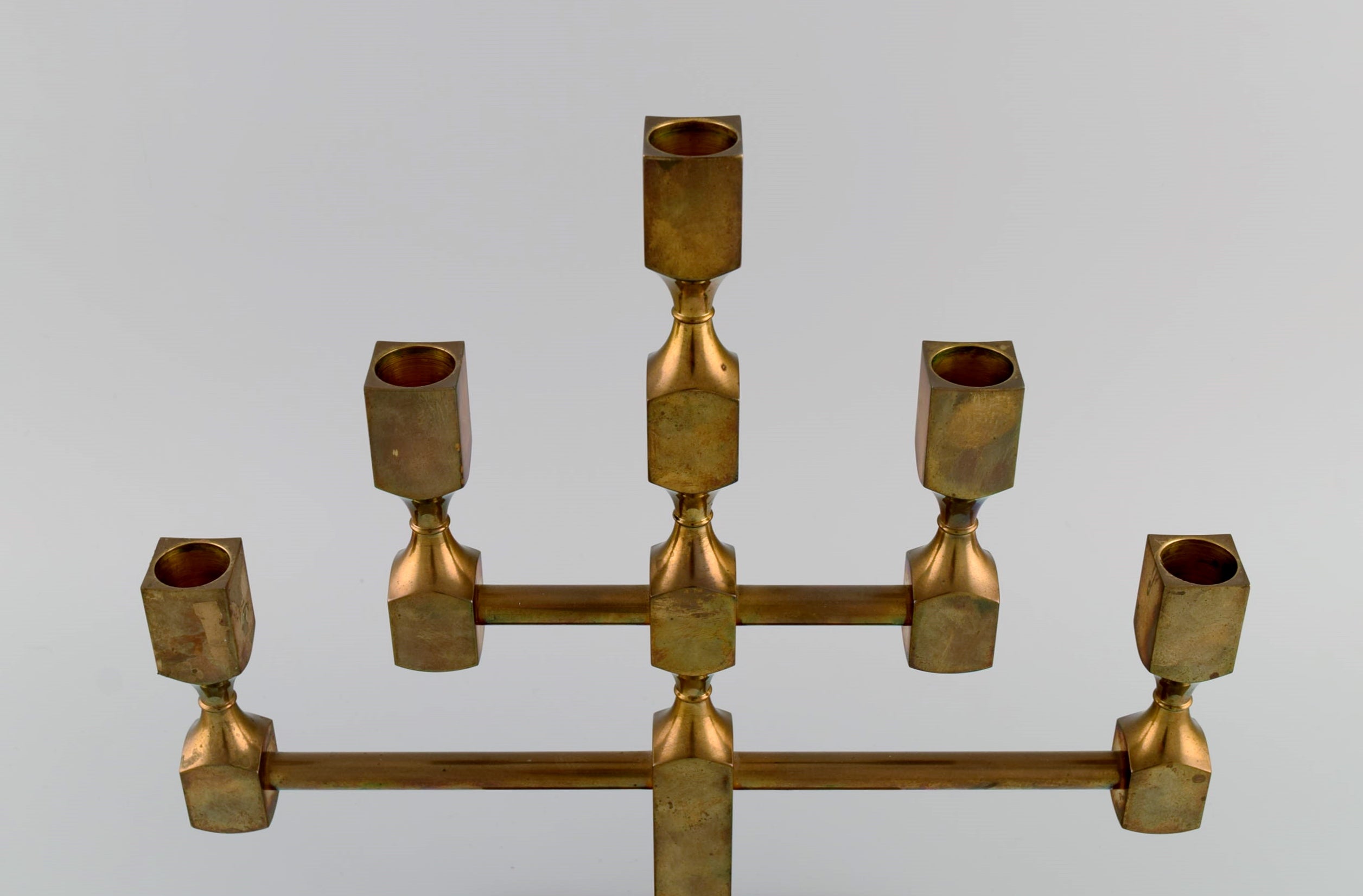Gusum Metal. Large five-armed candlestick in brass. Swedish design, 1980s.