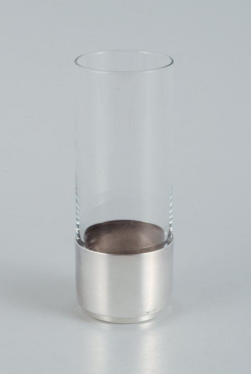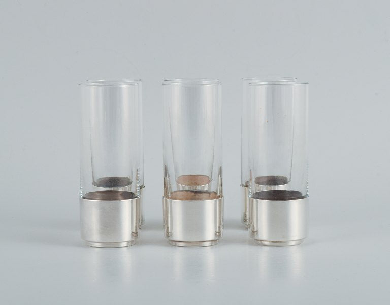 Lino Sabattini, Italian silversmith. A set of six drinking glasses in clear glass and sterling silver.