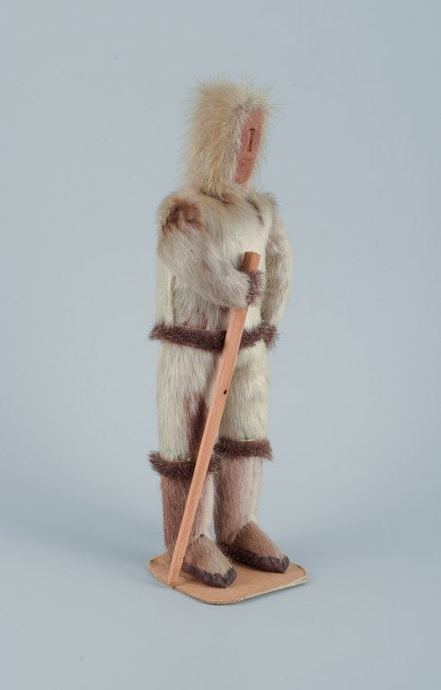Greenlandica. Wooden figure. Inuit in traditional clothes.