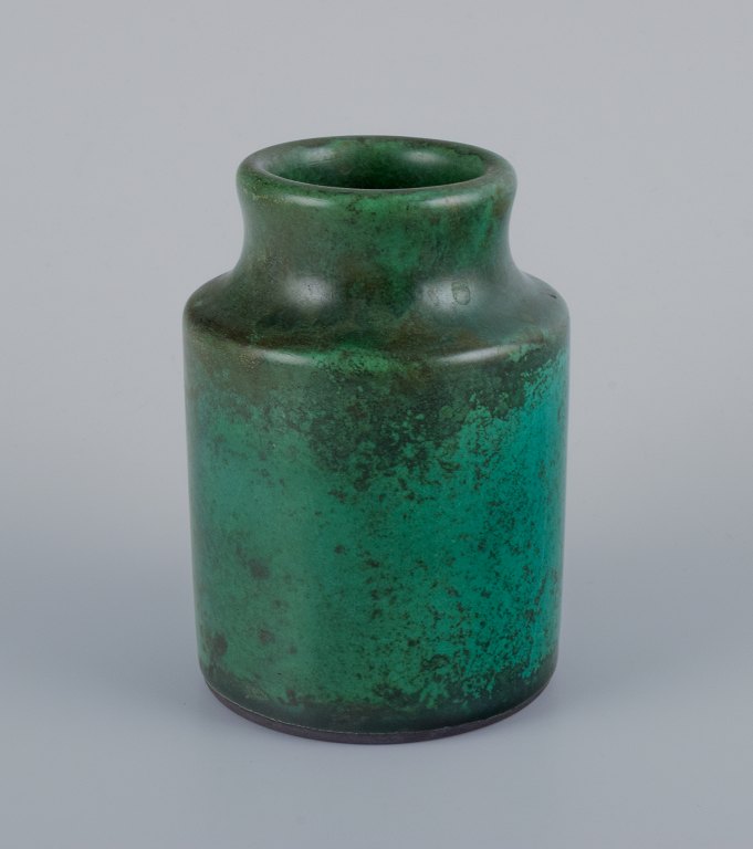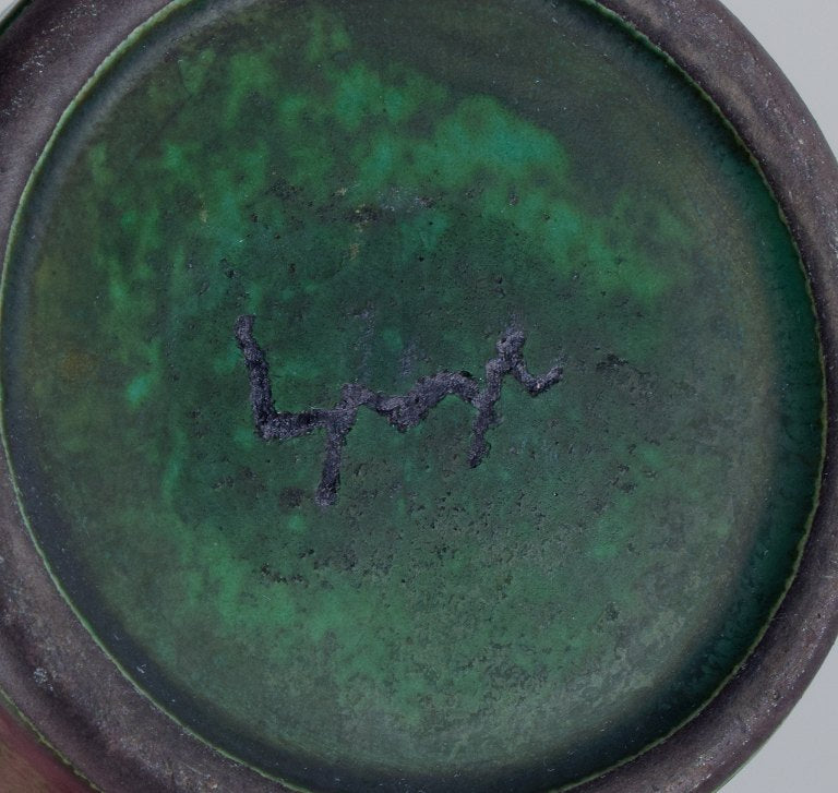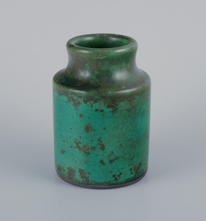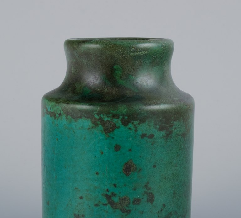 Hans Hedberg for Biot, France, unique ceramic vase with speckled green glaze.