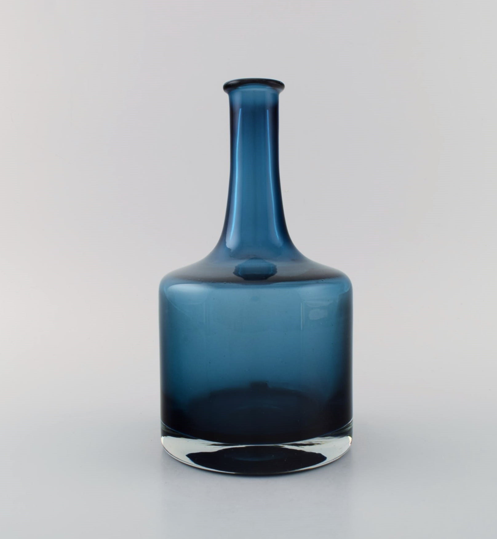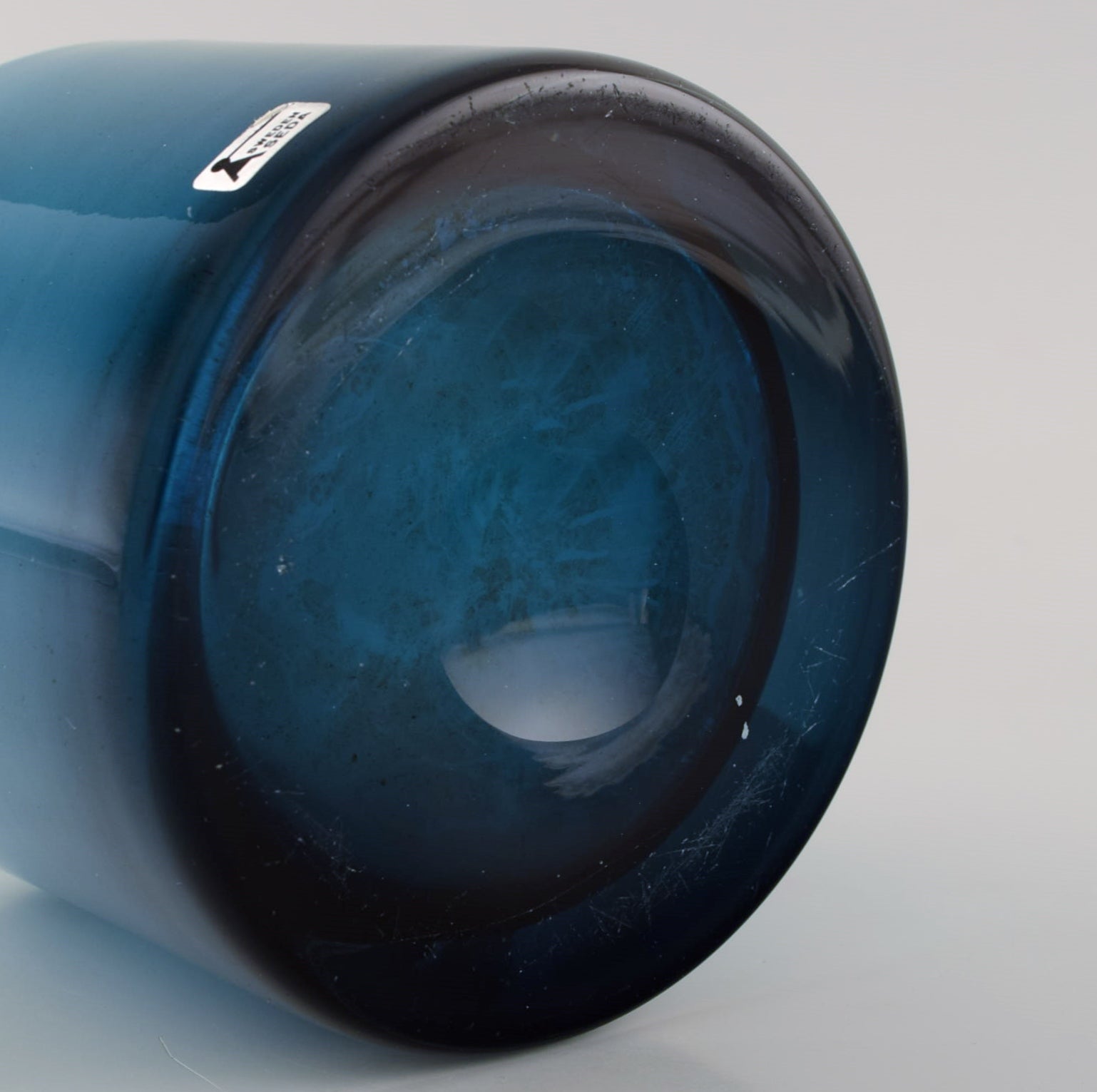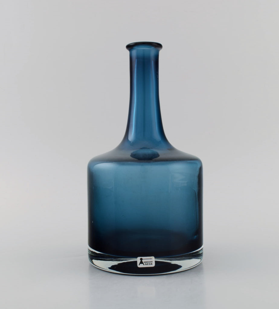 Åseda Glasbruk, Sweden. Narrow neck vase in blue mouth blown art glass. 1970s.