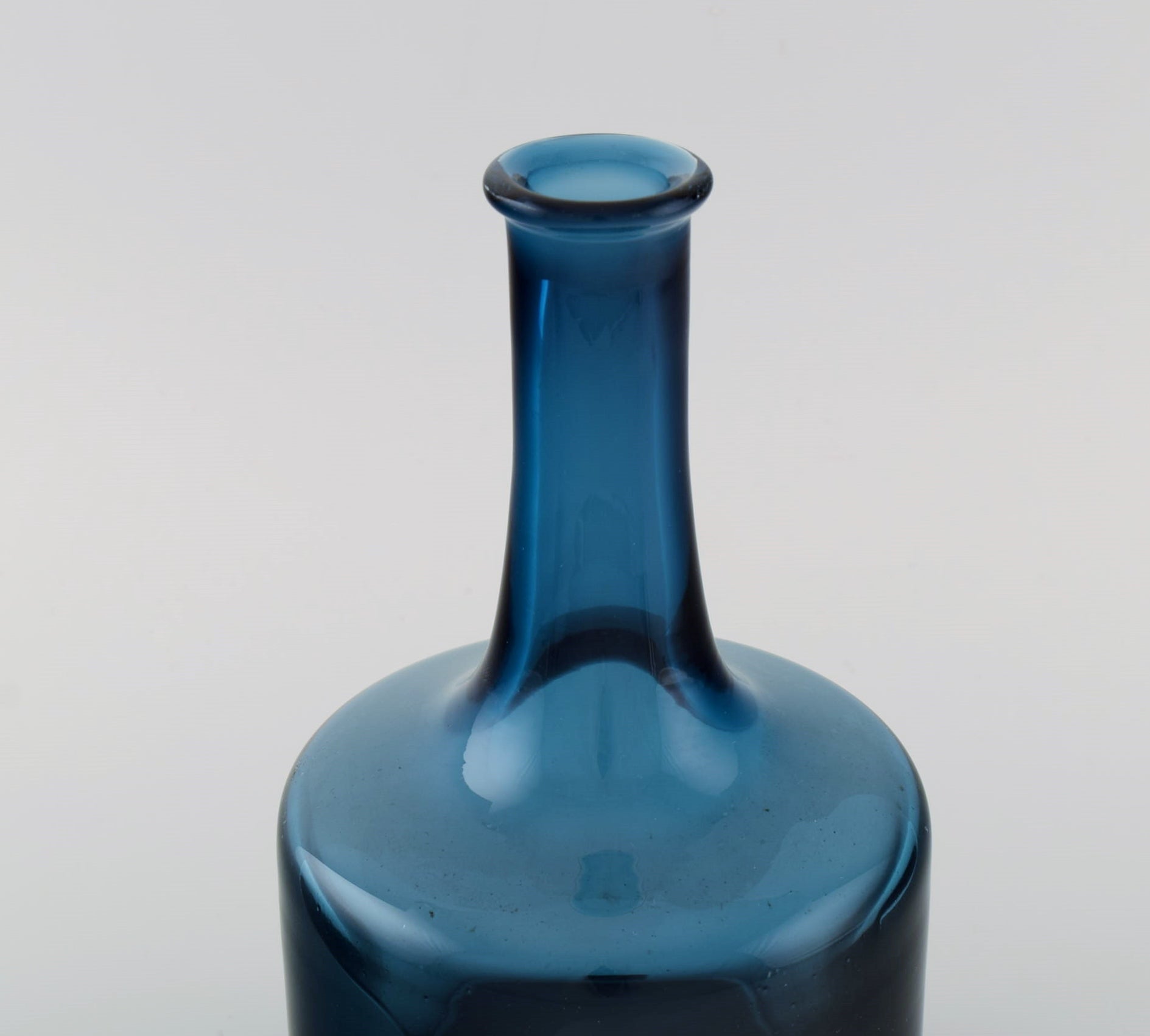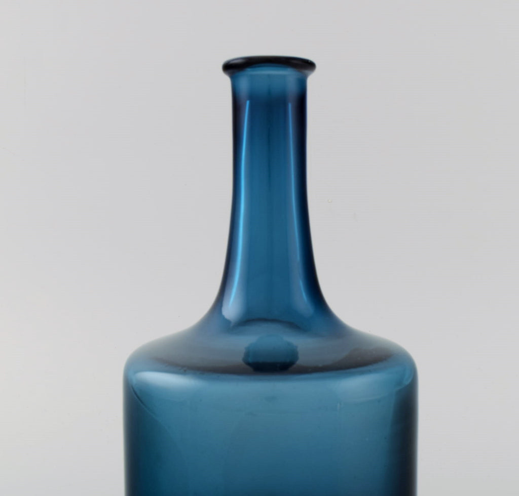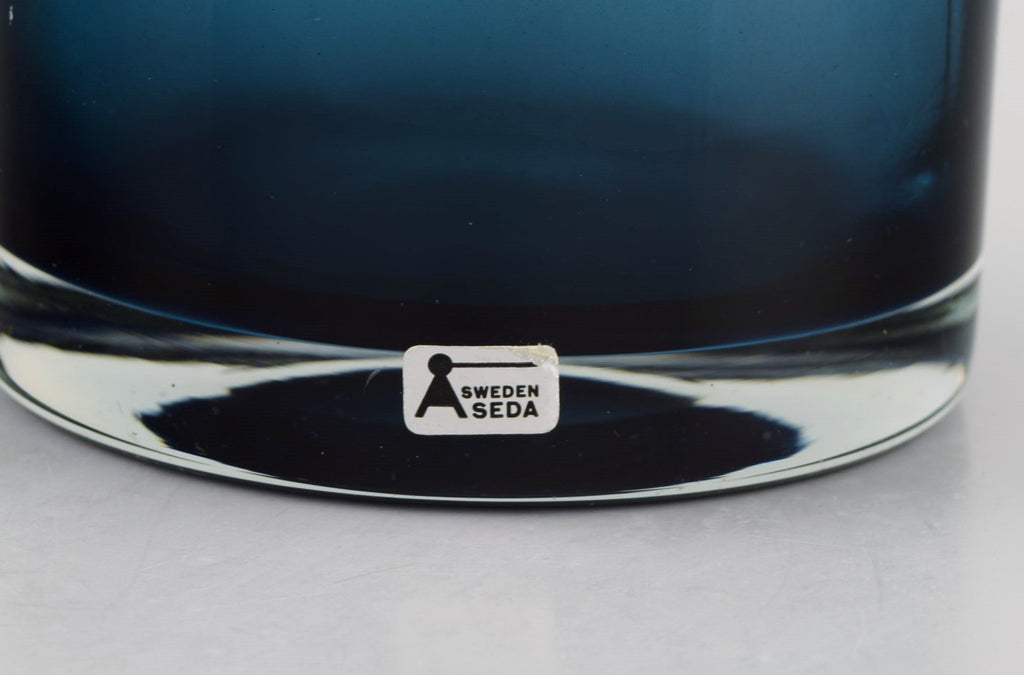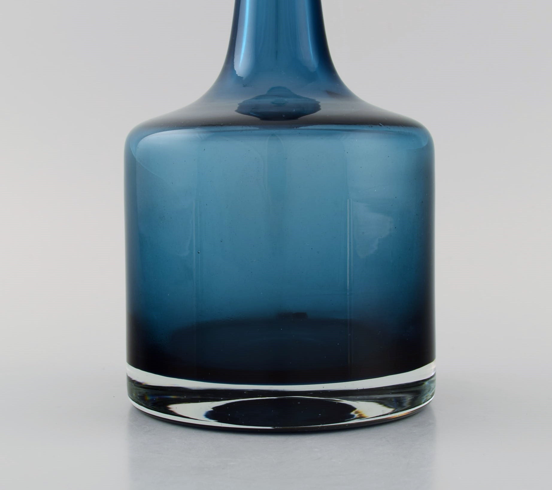 Åseda Glasbruk, Sweden. Narrow neck vase in blue mouth blown art glass. 1970s.