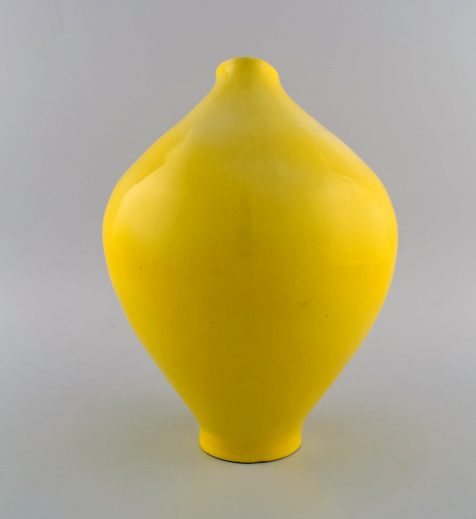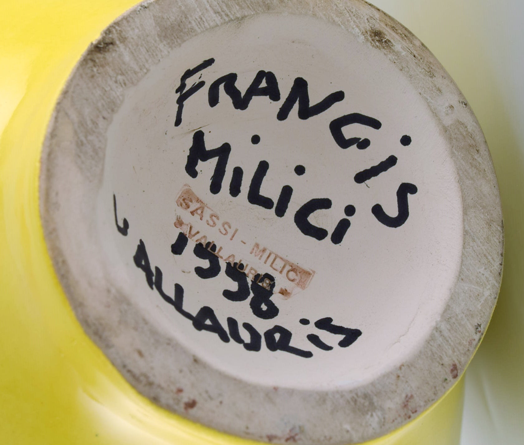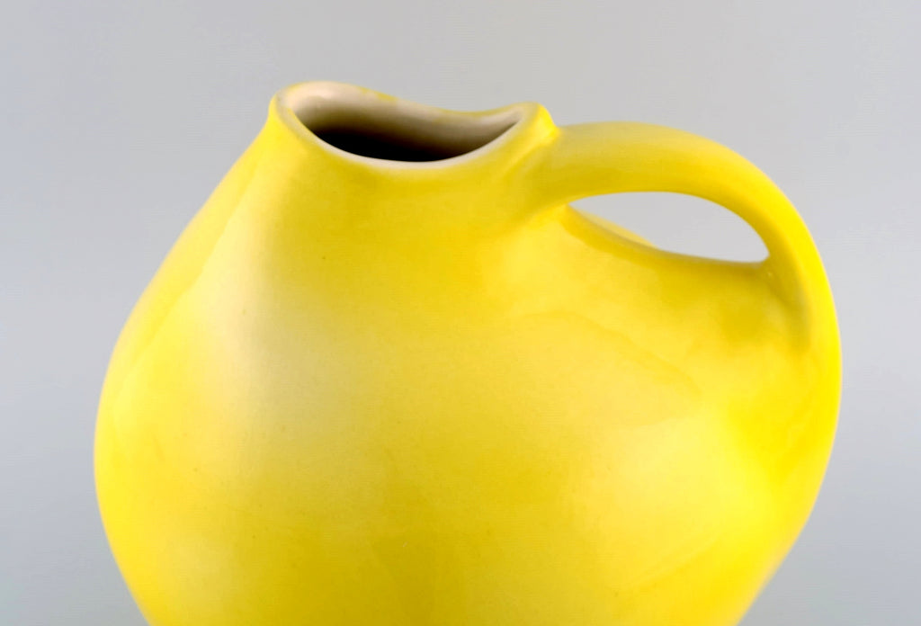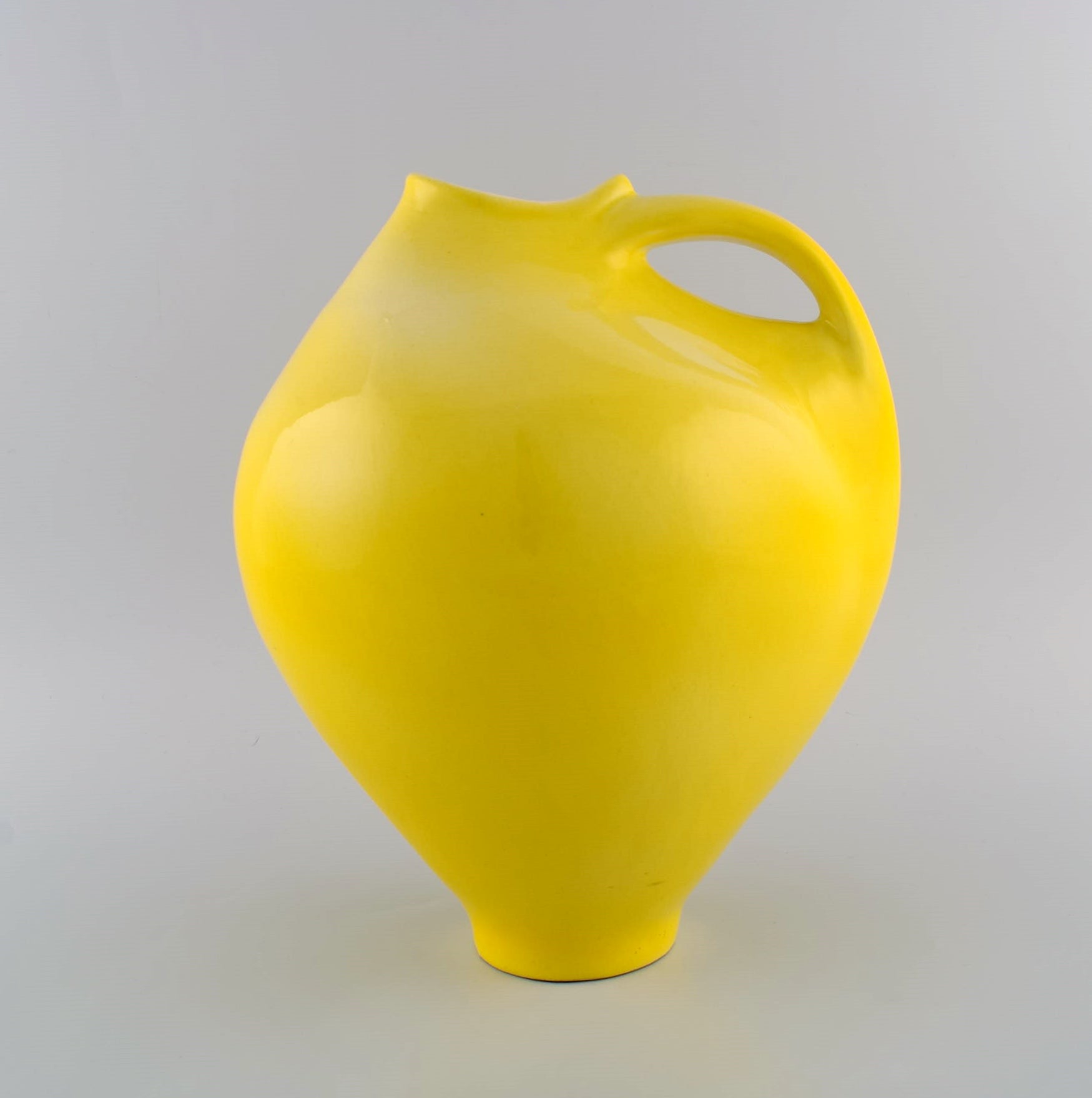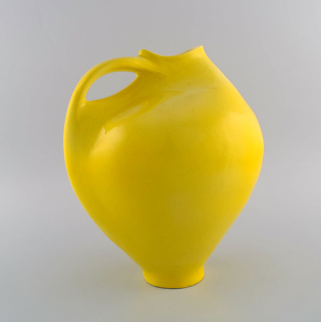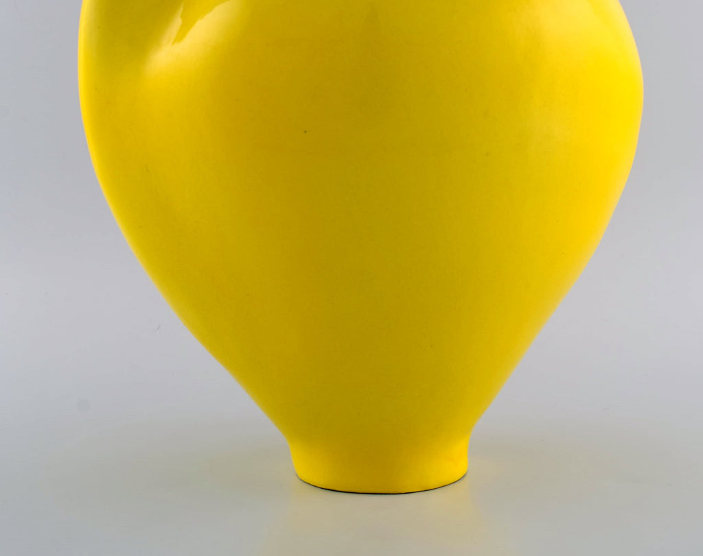 Francis Milici (b. 1952) for Vallauris. Large organically shaped unique pitcher in glazed ceramics. Beautiful glaze in yellow shades. Dated 1998.