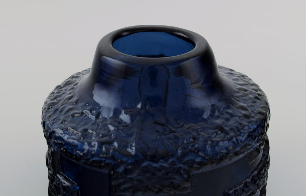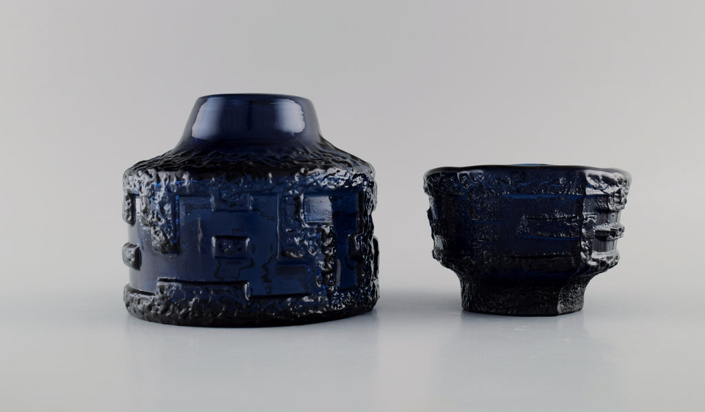 Göte Augustsson (1917-2004) for Ruda. Vase and bowl in blue mouth blown art glass. Swedish design, 1960s.