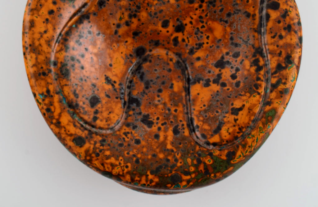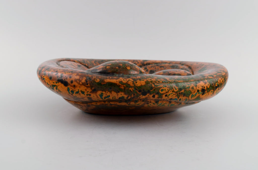 Hans Hedberg (1917-2007), Sweden. Unique bowl in glazed ceramics from Hedberg's own workshop in Biot, Southern France. Beautiful speckled glaze in orange shades. 1980s.