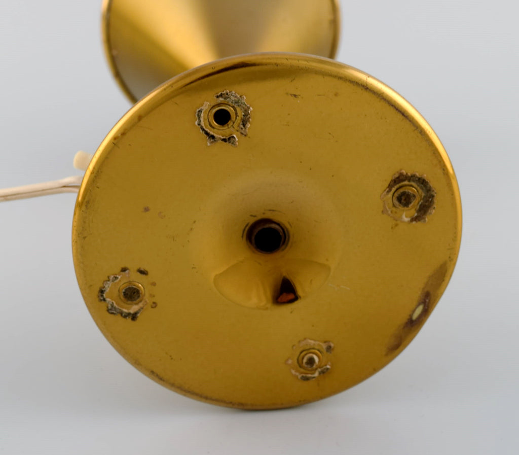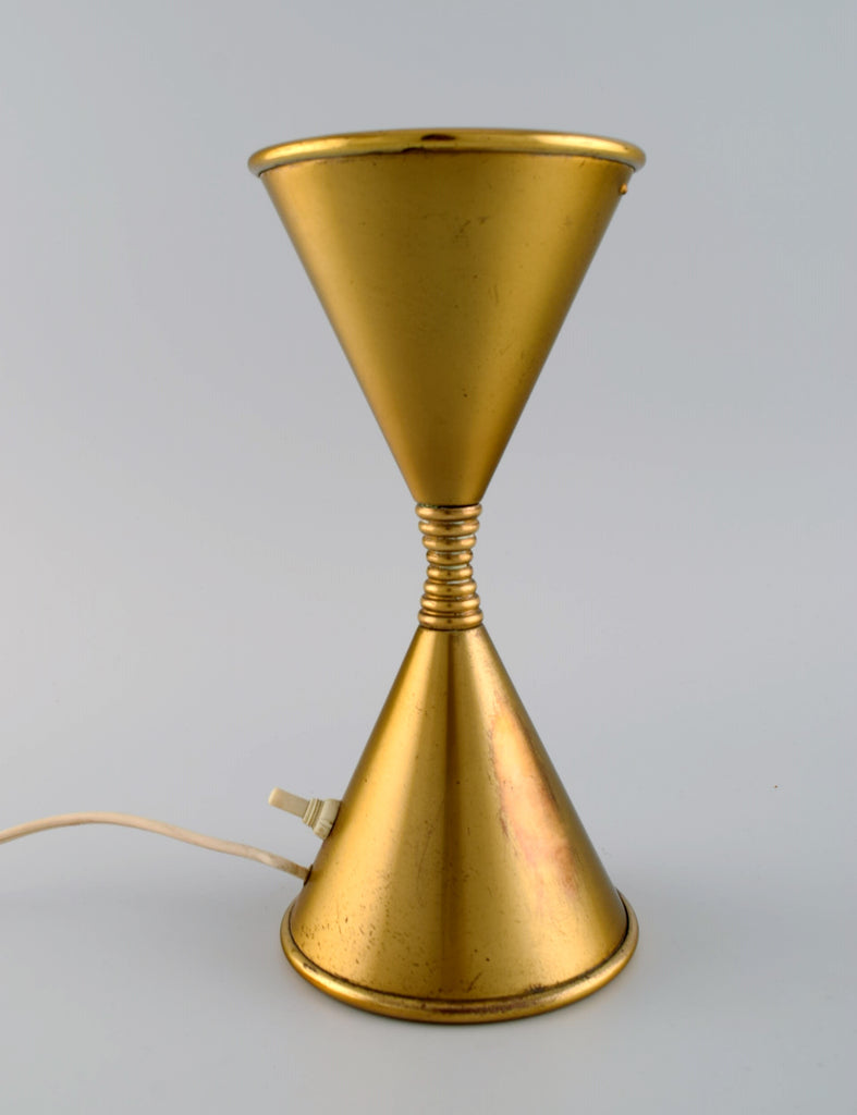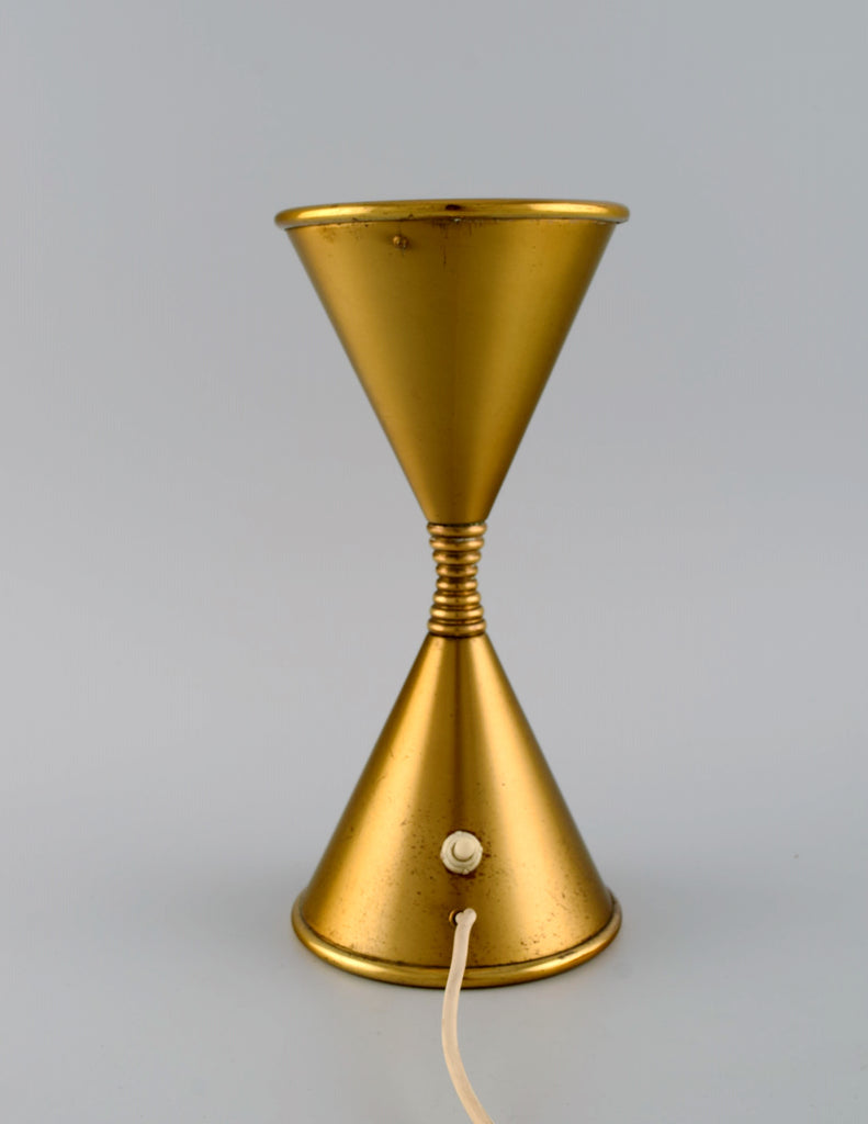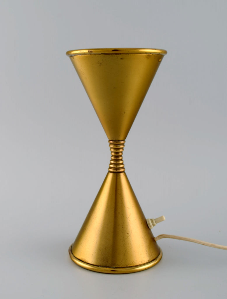 Hourglass shaped designer table lamp in brass. Mid-20th century.
