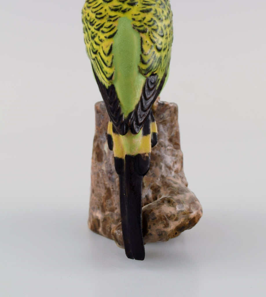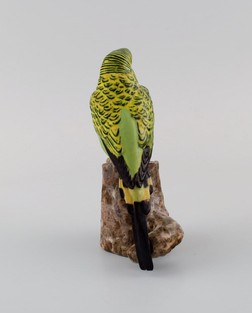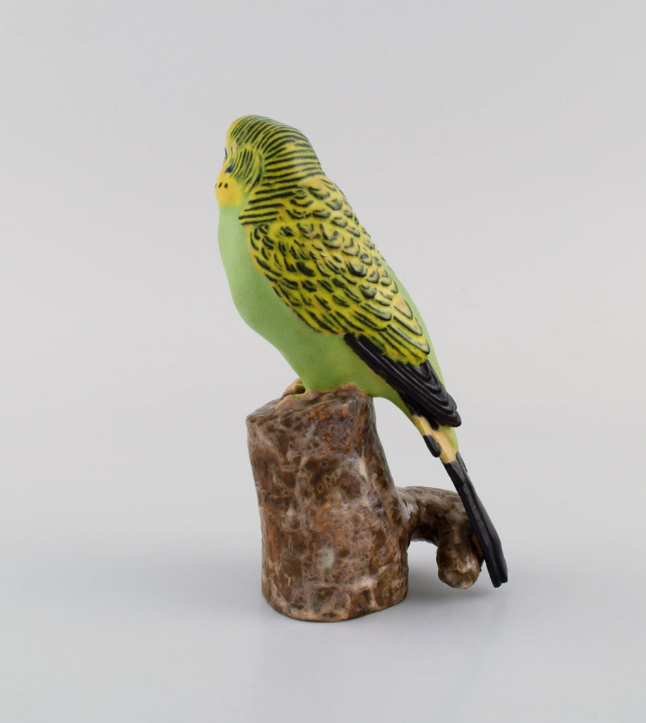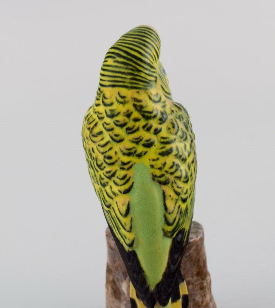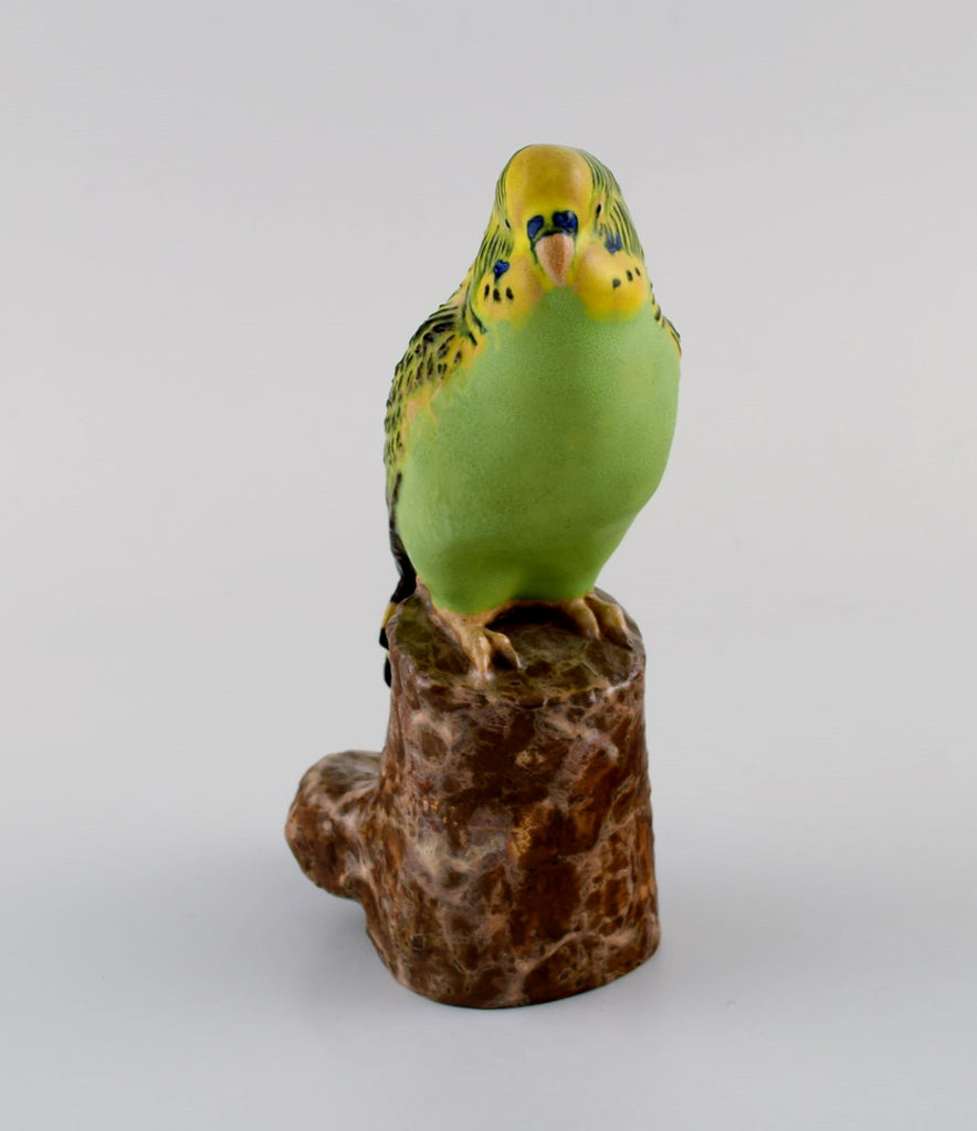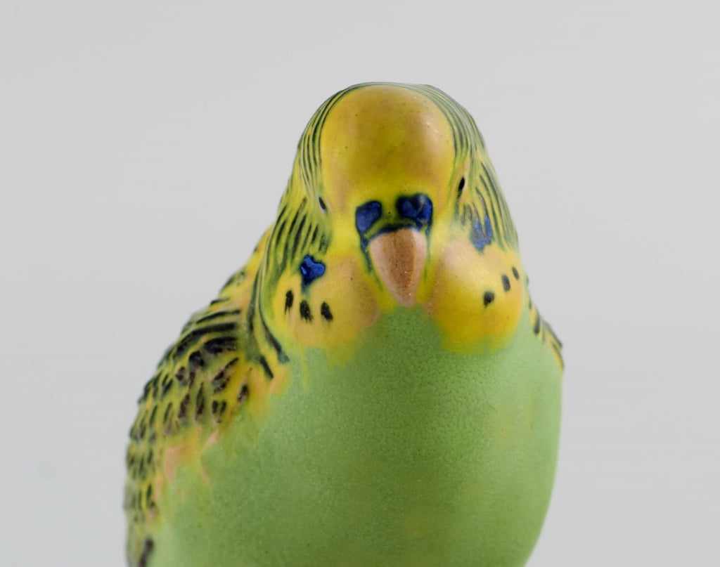 Jeanne Grut for Royal Copenhagen. Figure in hand-painted and glazed faience. Budgerigar. 1970s.